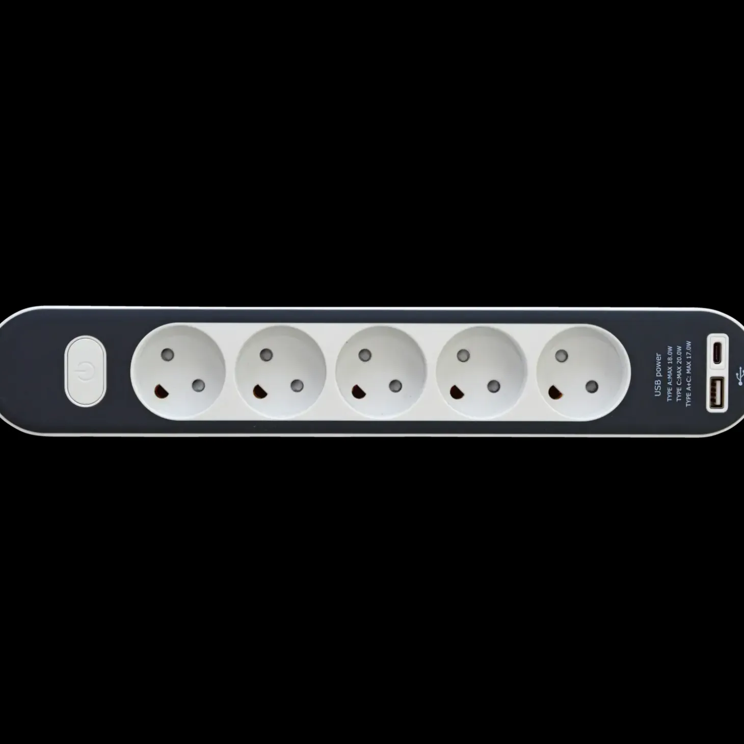 5-stikdåse med ledning og USB A+C uden jord 1,4 m
