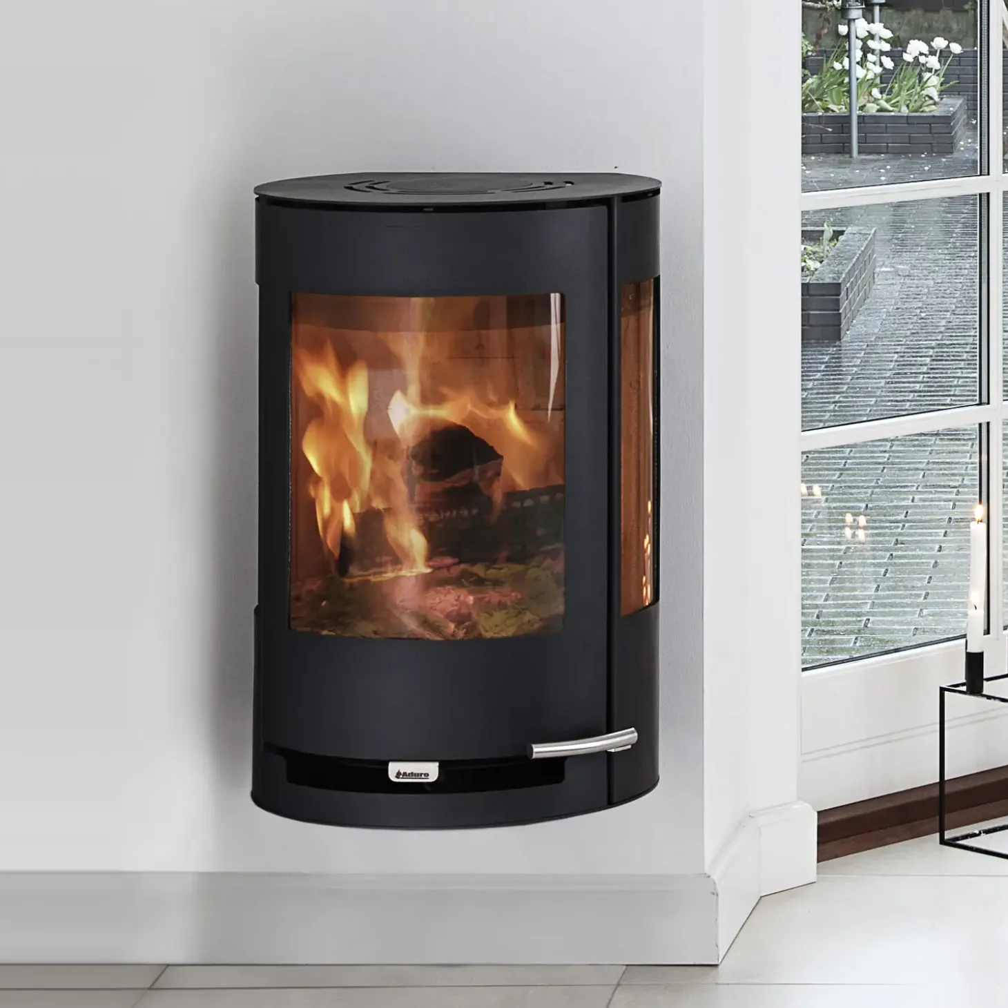 Fokus på de smukke detaljer med Aduro 9.4 væghængt brændeovn