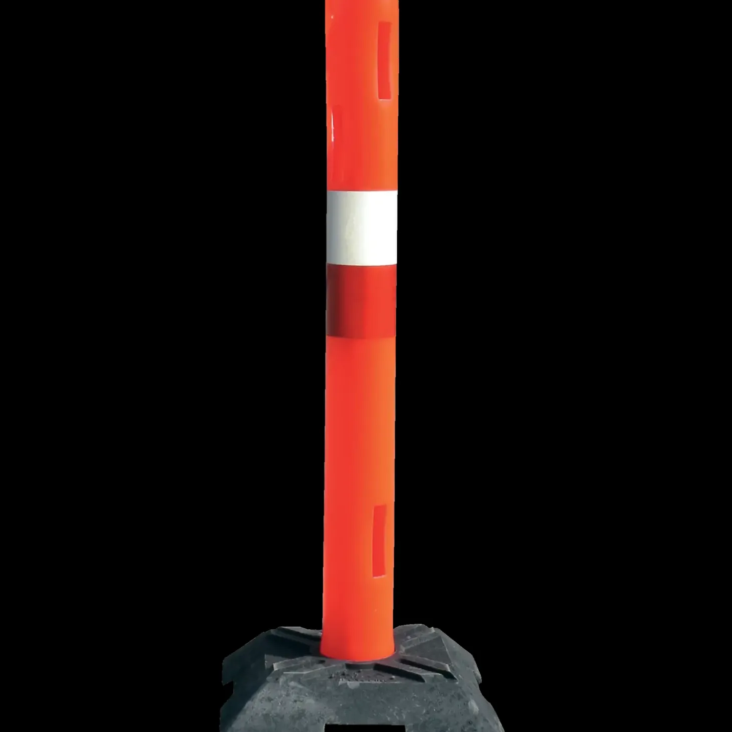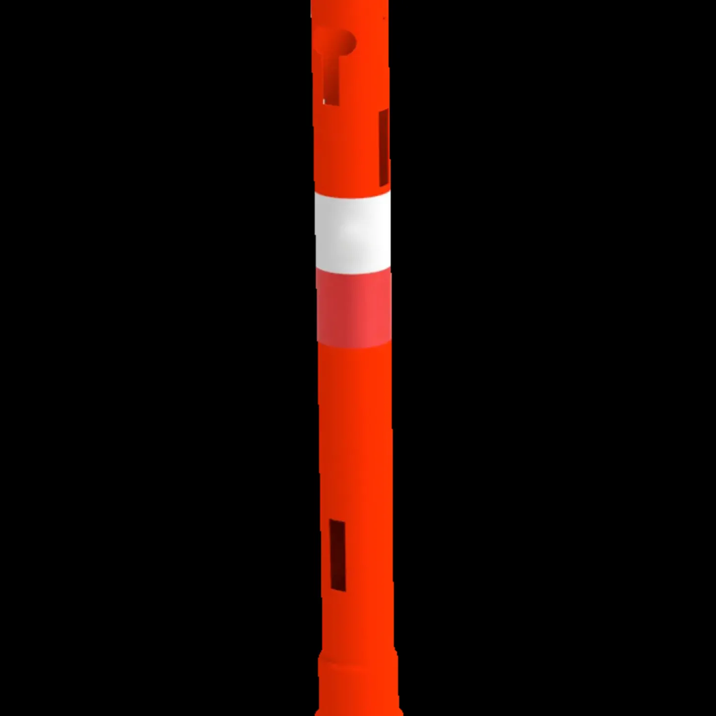 Afspærringscylinder i floucerende plast Rød og hvid refleks.6 udstansninger til afspærringslægter, slidse til afmærkningsbånd og afspærringsline samt håndtag.