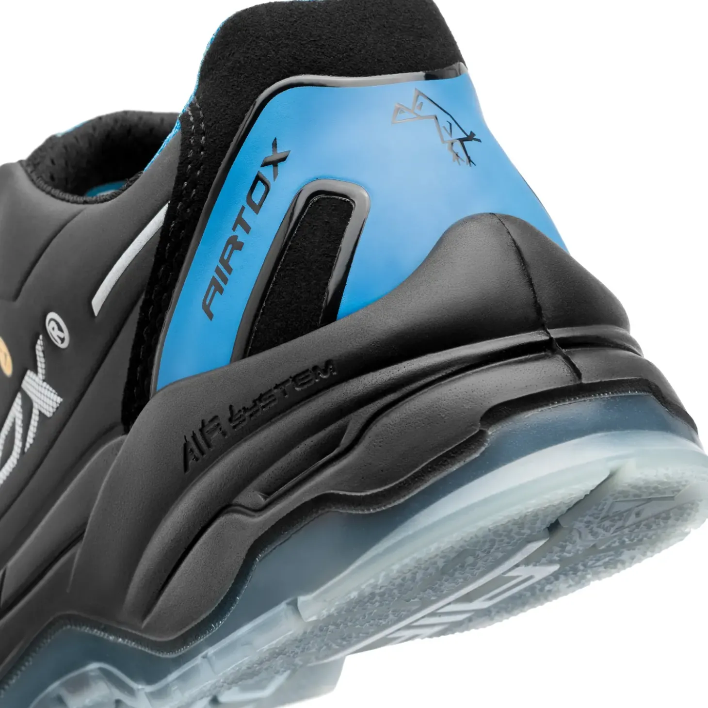 AIRTOX high-tech sikkerhedssko TX1 er udstyret med en række super features såsom verdens letteste sømværn: Whitelayer® – stærk som stål og blød som en klud. TX1 overdel består af et nyt og avanceret microfiber materiale. Materialet byder på letvægt, åndbarhed og vandafvisende egenskaber. Pasformen i TX1 er fantastisk god, det er nemlig lykkedes ingeniørerne fra Airtox at skabe en pasform som er både bred og atletisk. Skoene sidder som en sok om foden. TX1 sikkerhedssko kombinerer Whitelayer® med Airtox AIR-system 3.0, som gør modellen fleksibel og blød i en grad, der ellers kendetegner nogle få gode sneakers.