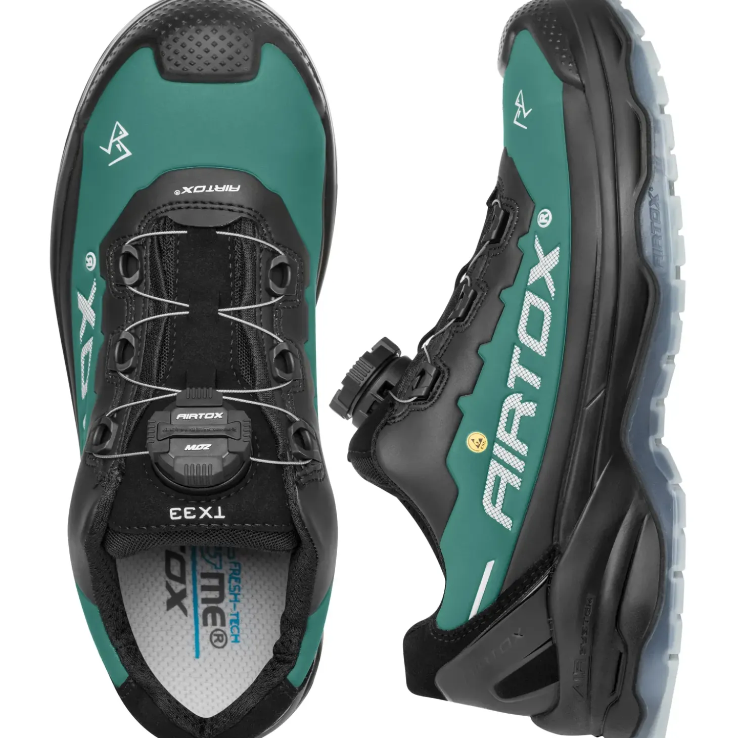 Denne AIRTOX high-tech sikkerhedssko TX33 er udstyret med en række super features som verdens letteste sømværn: WHITELAYER®, stærk som stål og blød som en klud. Skoen sidder som en sok om foden.