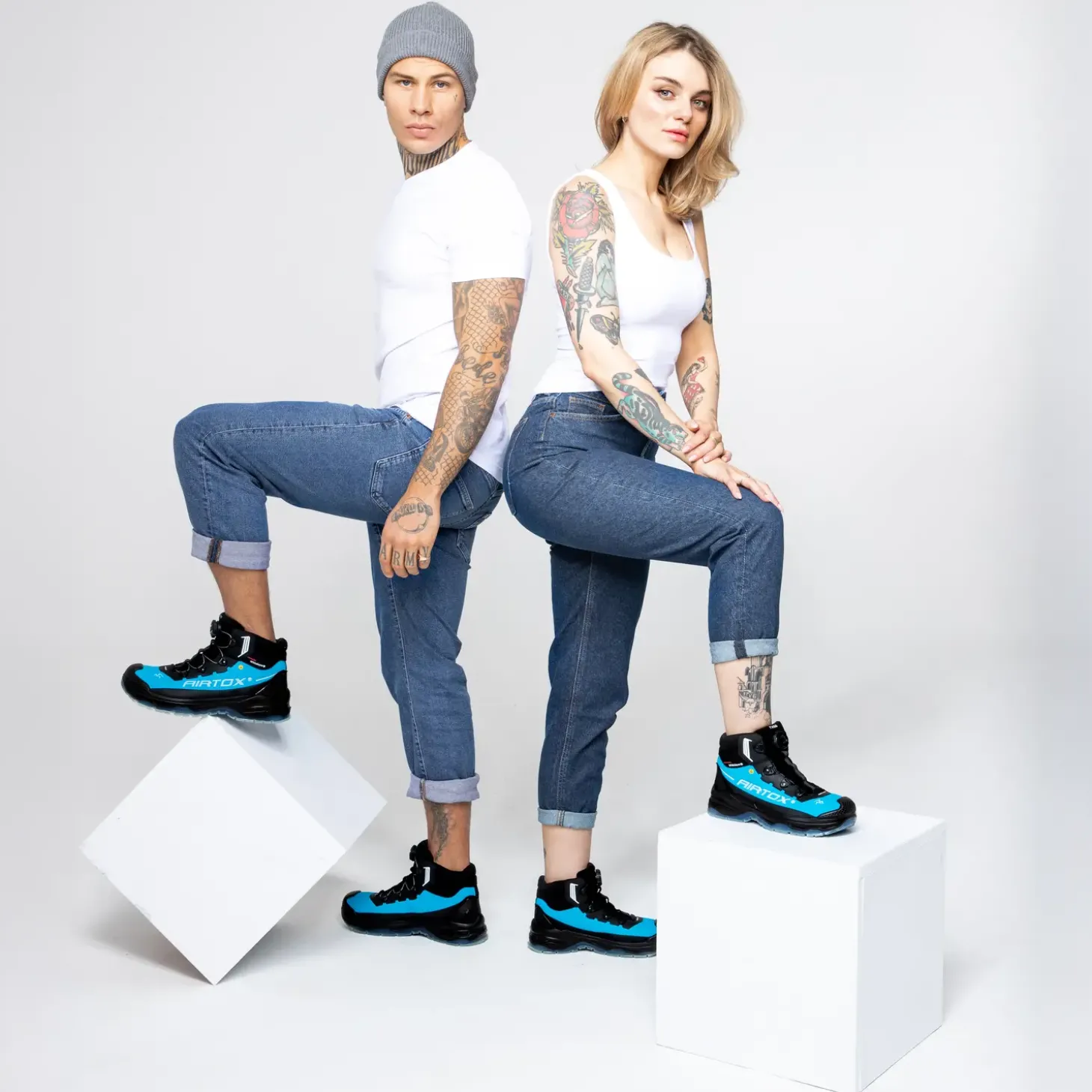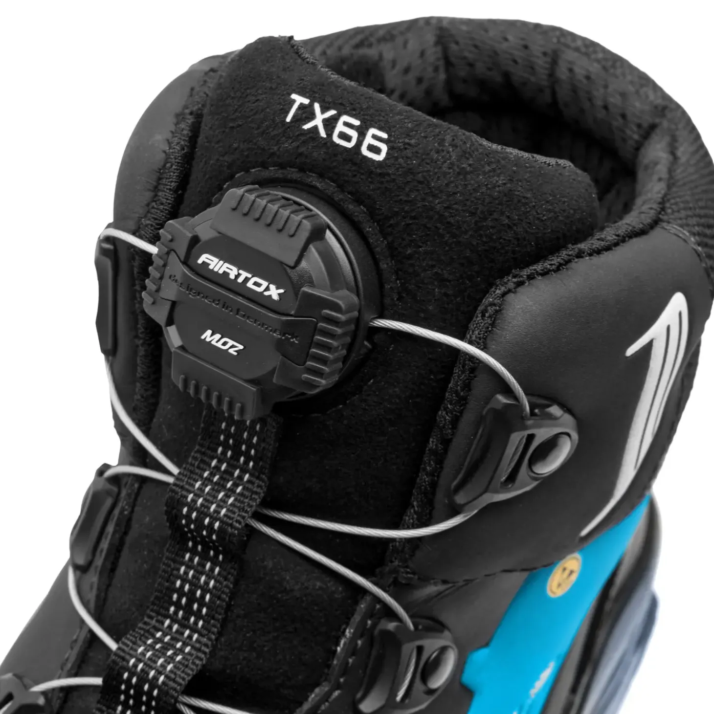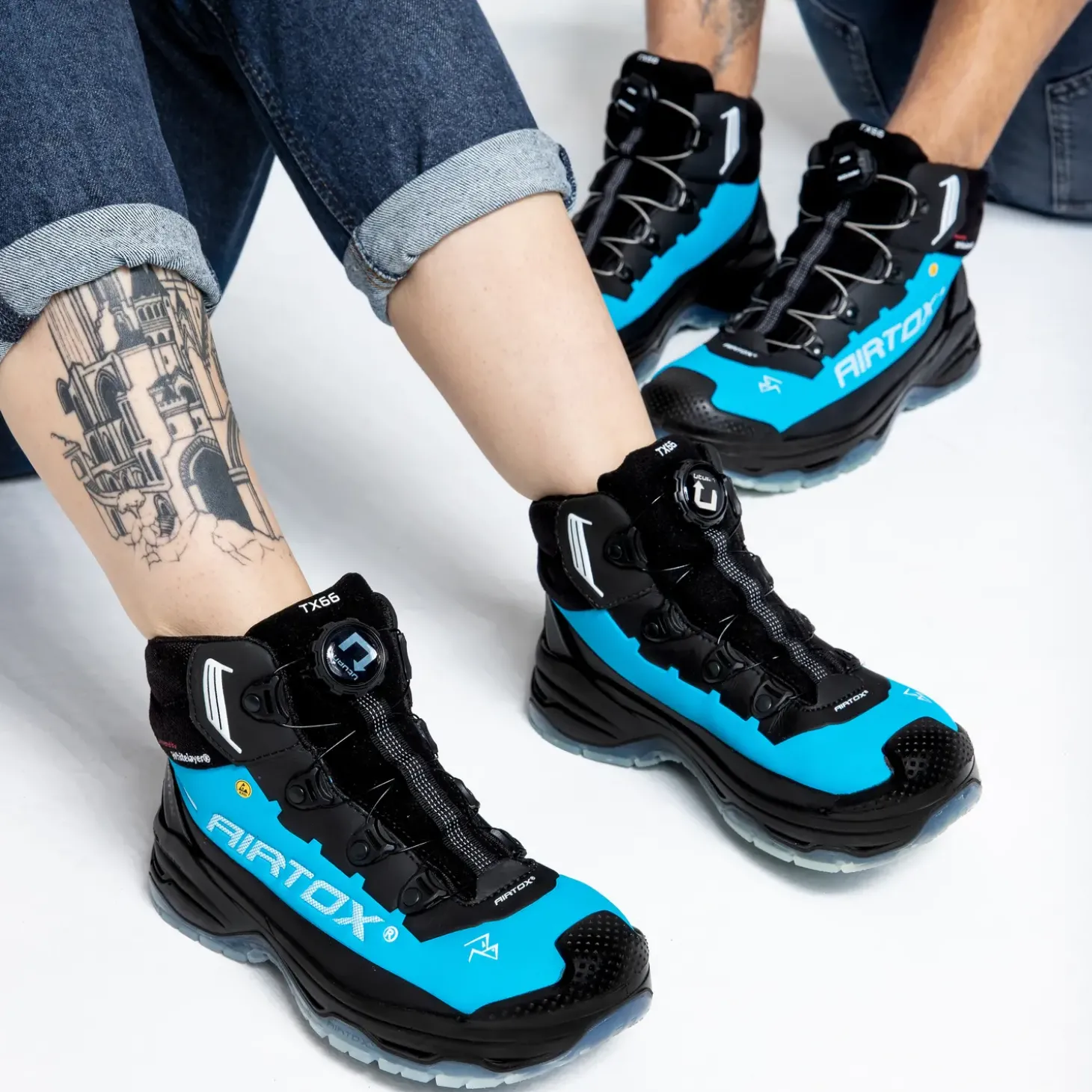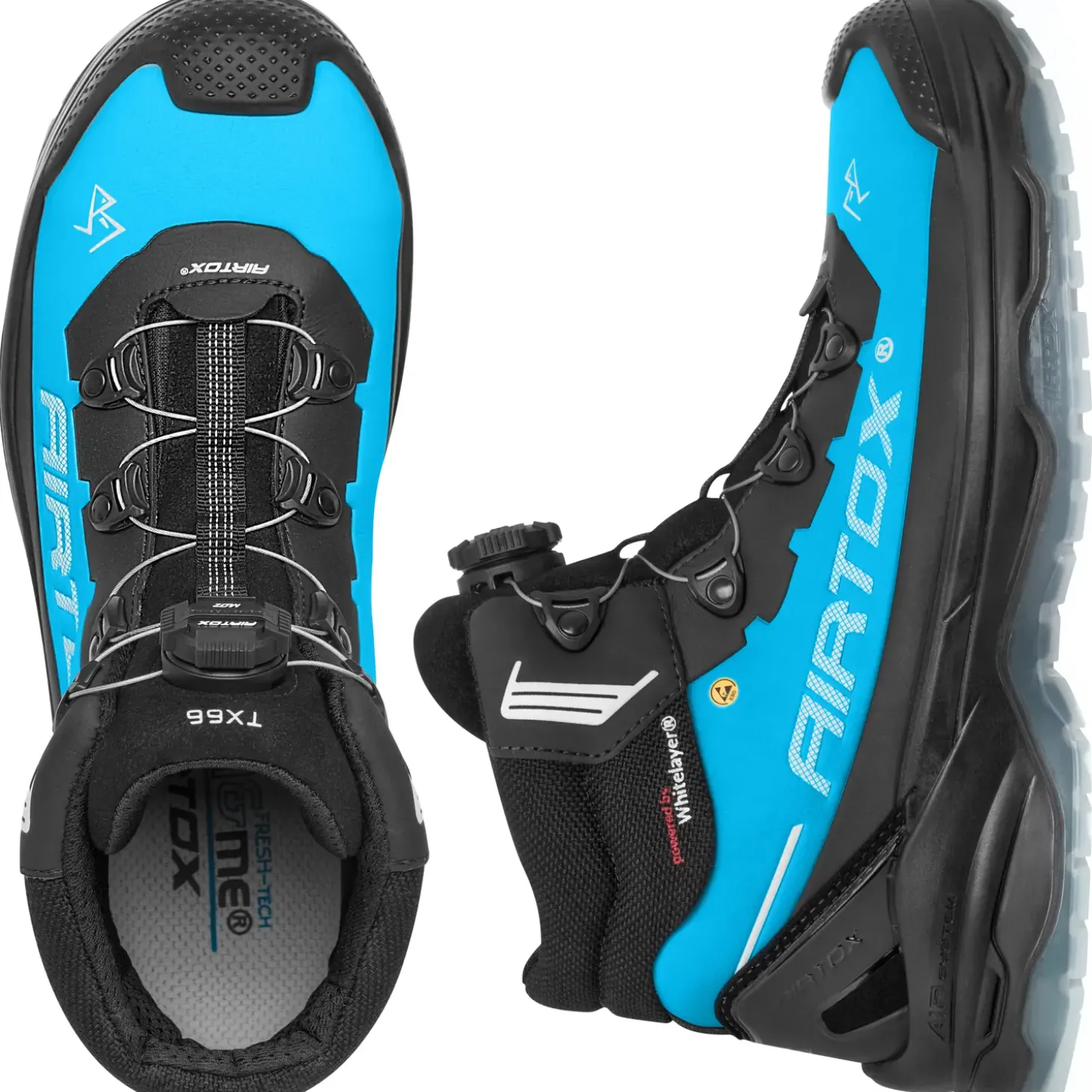 AIRTOX high-tech sikkerhedssko TX66 er udstyret med en række super features såsom verdens letteste sømværn: Whitelayer® – stærk som stål og blød som en klud. TX66 overdel består af et nyt og avanceret microfiber materiale. Materialet byder på letvægt, åndbarhed og vandafvisende egenskaber. Pasformen i TX66 er fantastisk god, det er nemlig lykkedes ingeniørerne fra Airtox at skabe en pasform som er både bred og atletisk. Skoene sidder som en sok om foden. TX66 sikkerhedssko kombinerer Whitelayer® med Airtox AIR-system 3.0, som gør modellen fleksibel og blød i en grad, der ellers kendetegner nogle få gode sneakers.