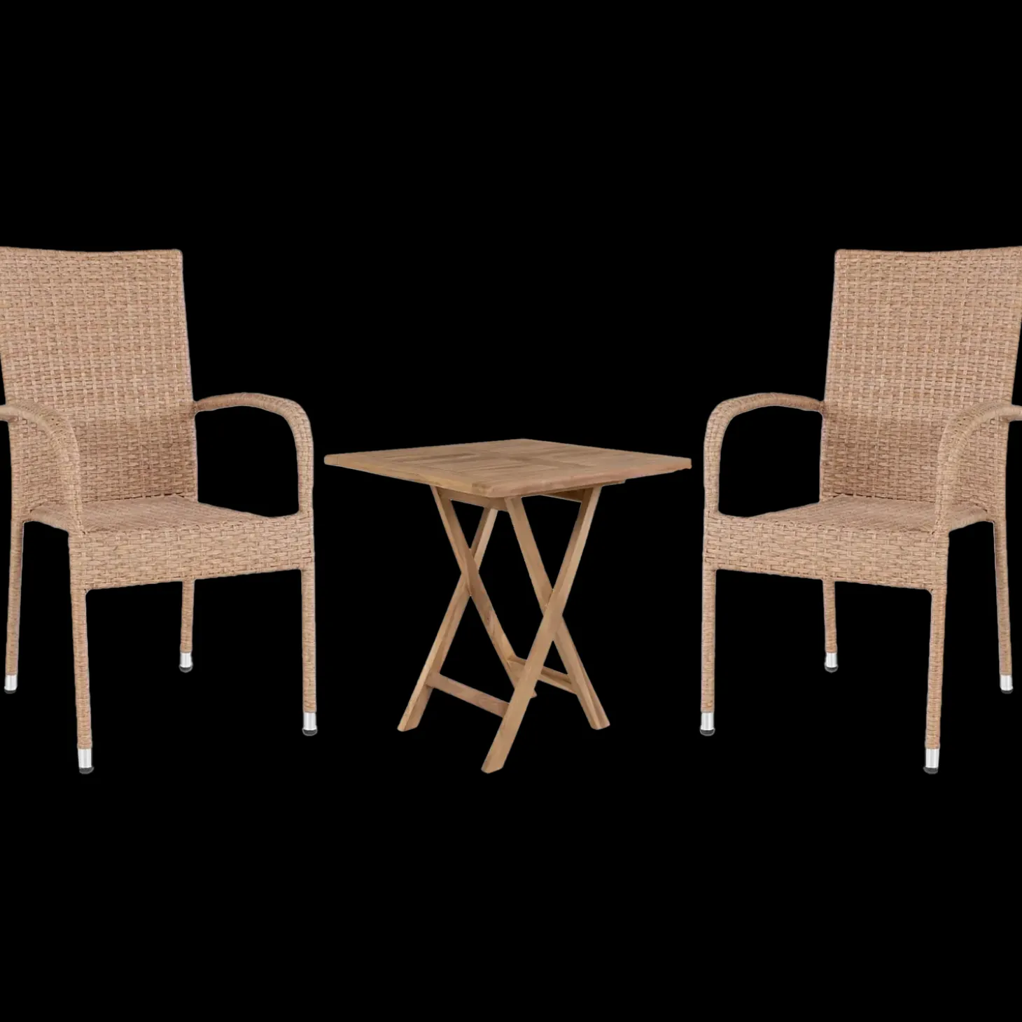 1 x cafébord i teak der er sammenklappeligt for nem opbevaring.