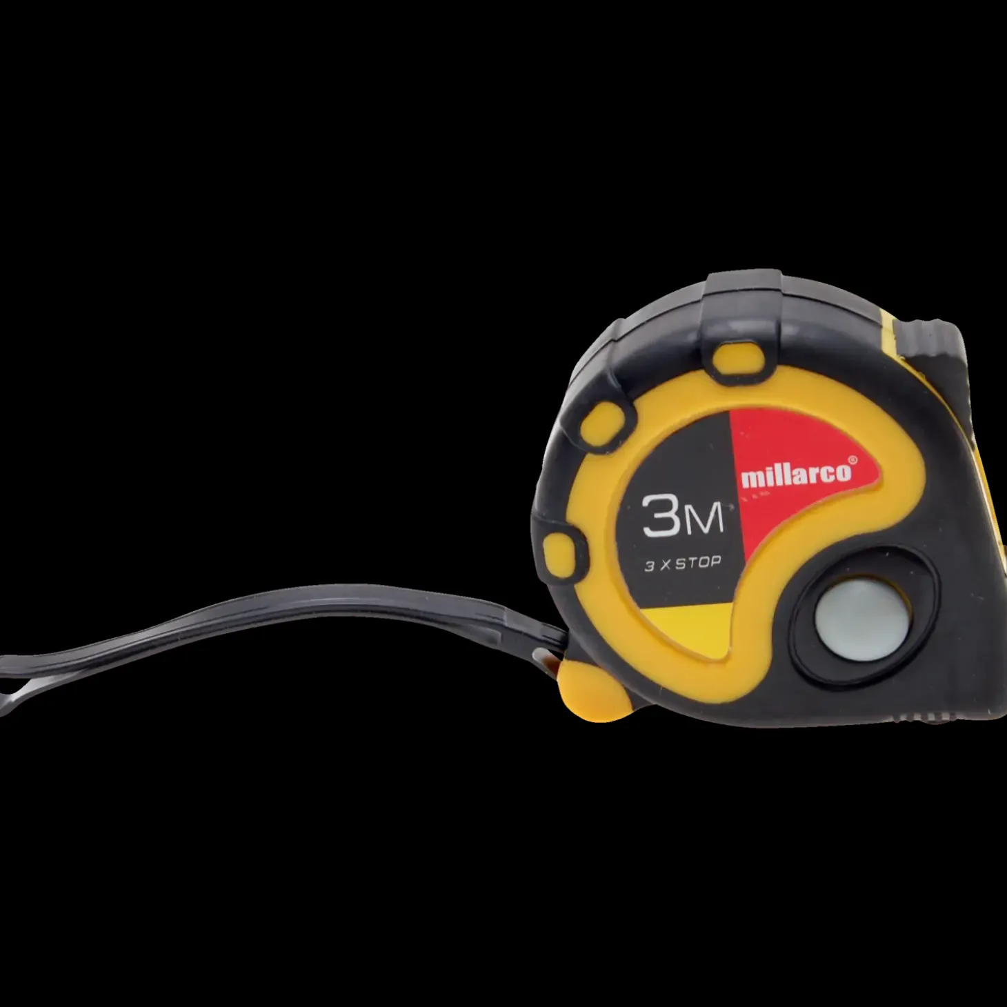 16 mm stål båndmål med 3 stop funktioner samt bærehank.