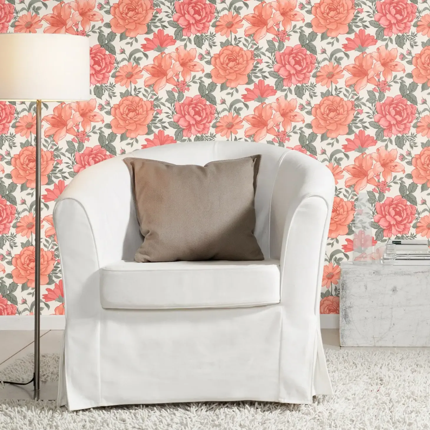 Skab varme og naturlige rammer. Dekroere dit rum med dette flotte Bambino tapet med blomster.