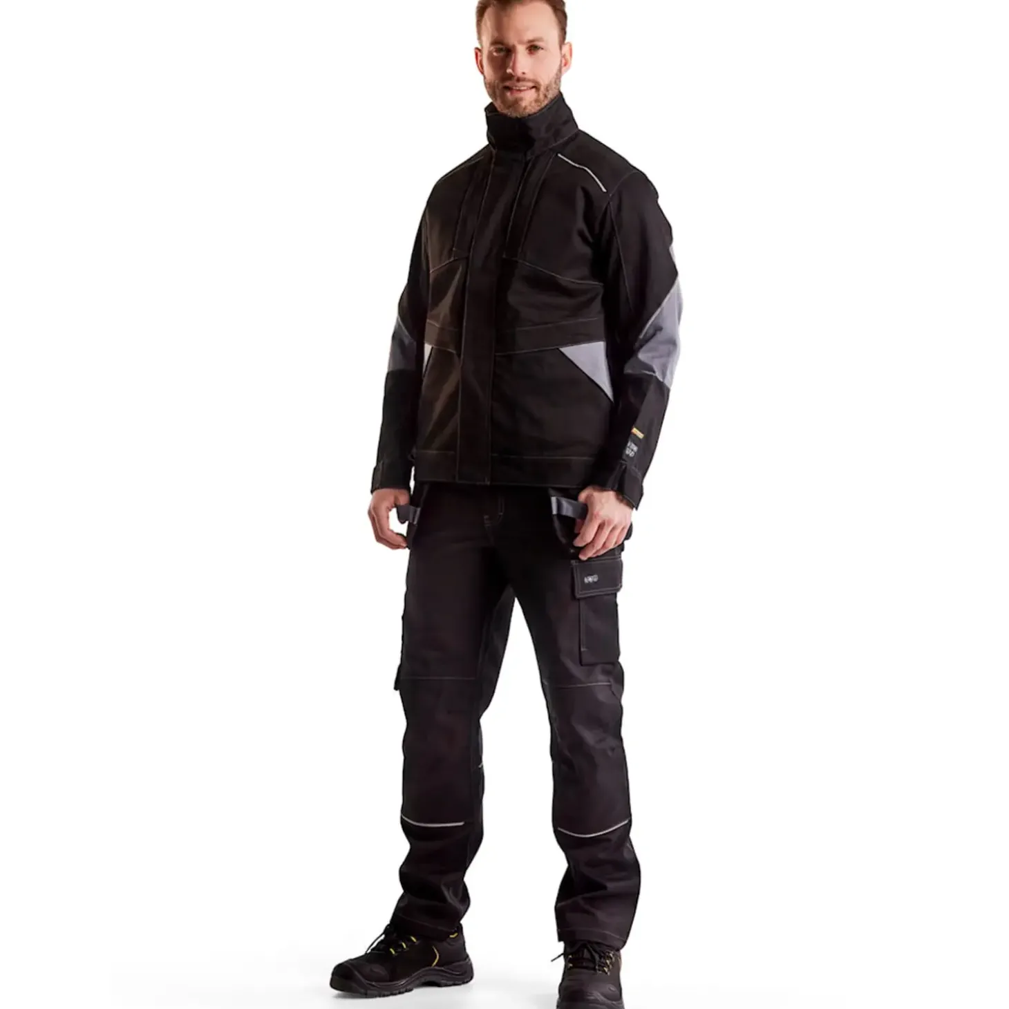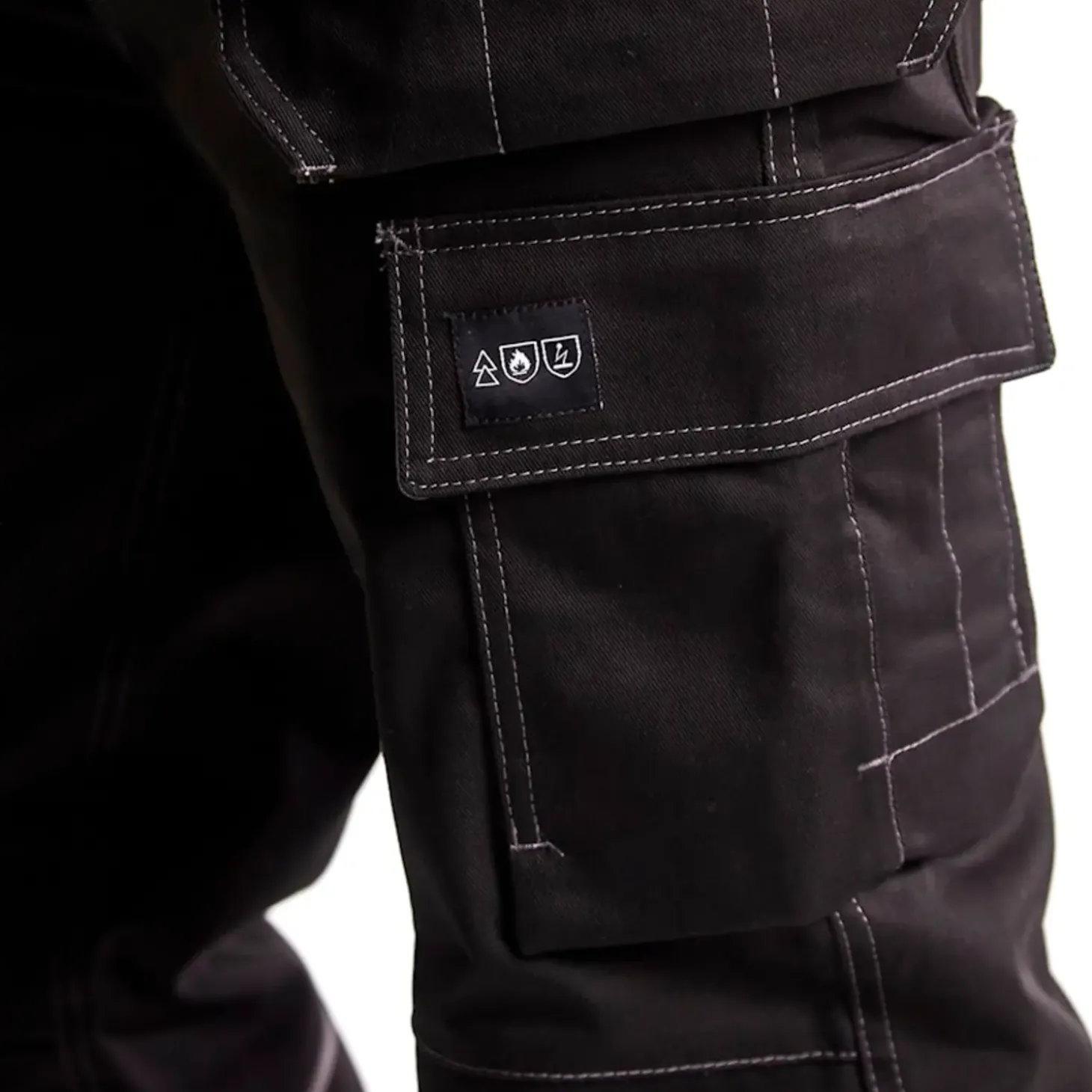 Brandhæmmende buks med god pasform som er slidstærk og komfortabel. Buksen har mange funktionelle detaljer, for eksempel formsyede ben og reflekterende detaljer nederst og rummelige sømlommer med mange funktioner. Indvendige knælommer for øget komfort, når du arbejder på knæene. Certificeret i henhold til EN 1149-5, EN ISO 11612 A1, B1, C1, F1 og IEC 61482-2, klasse 1. ATPV: 16,0 cal/cm², HAF: 82,0%