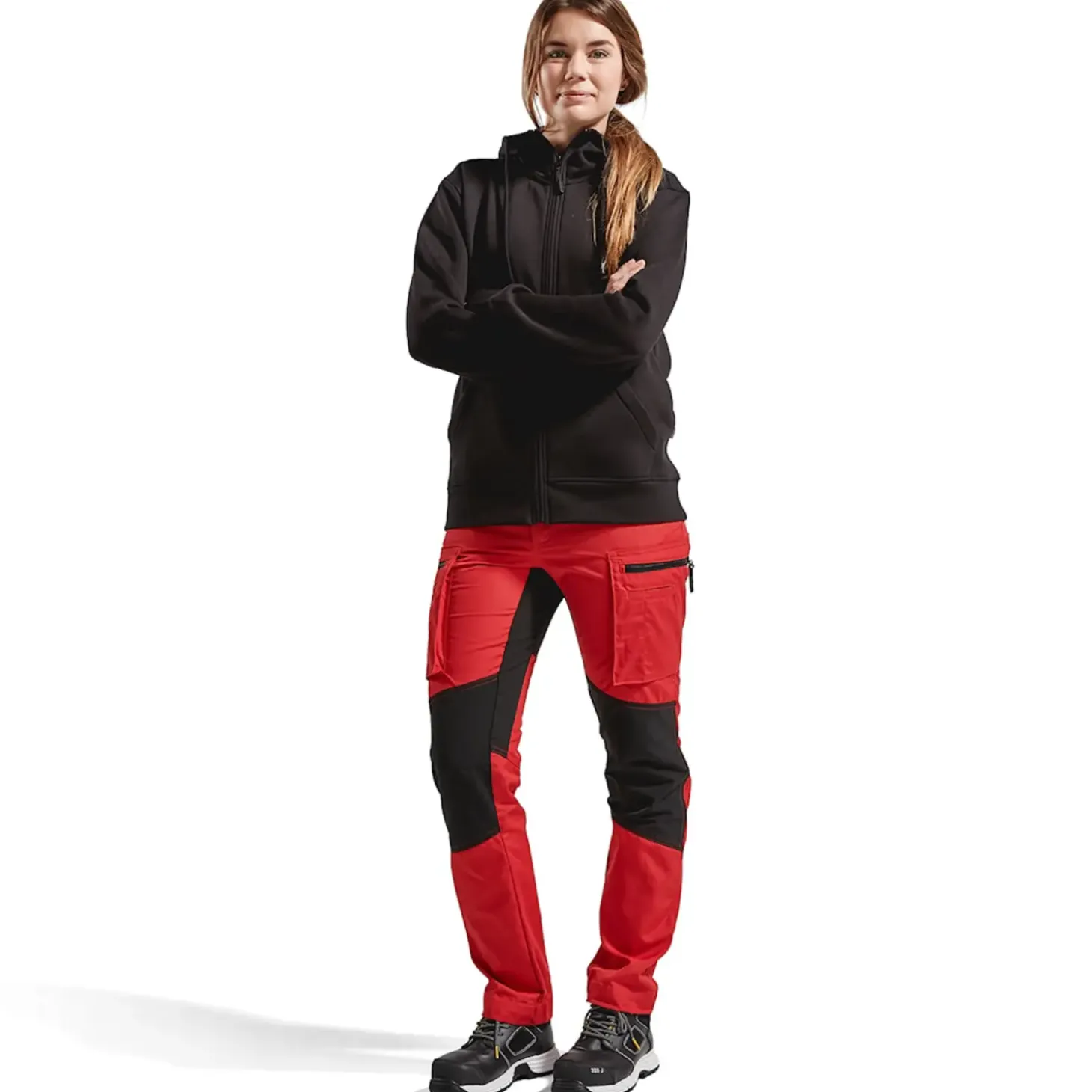 Blåklæder dame service bukser med stretch rød/sort str. C30