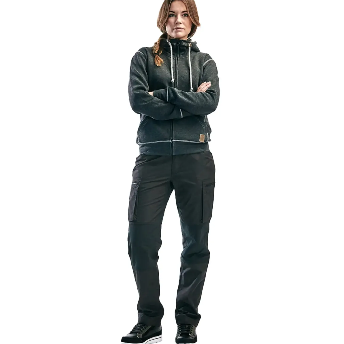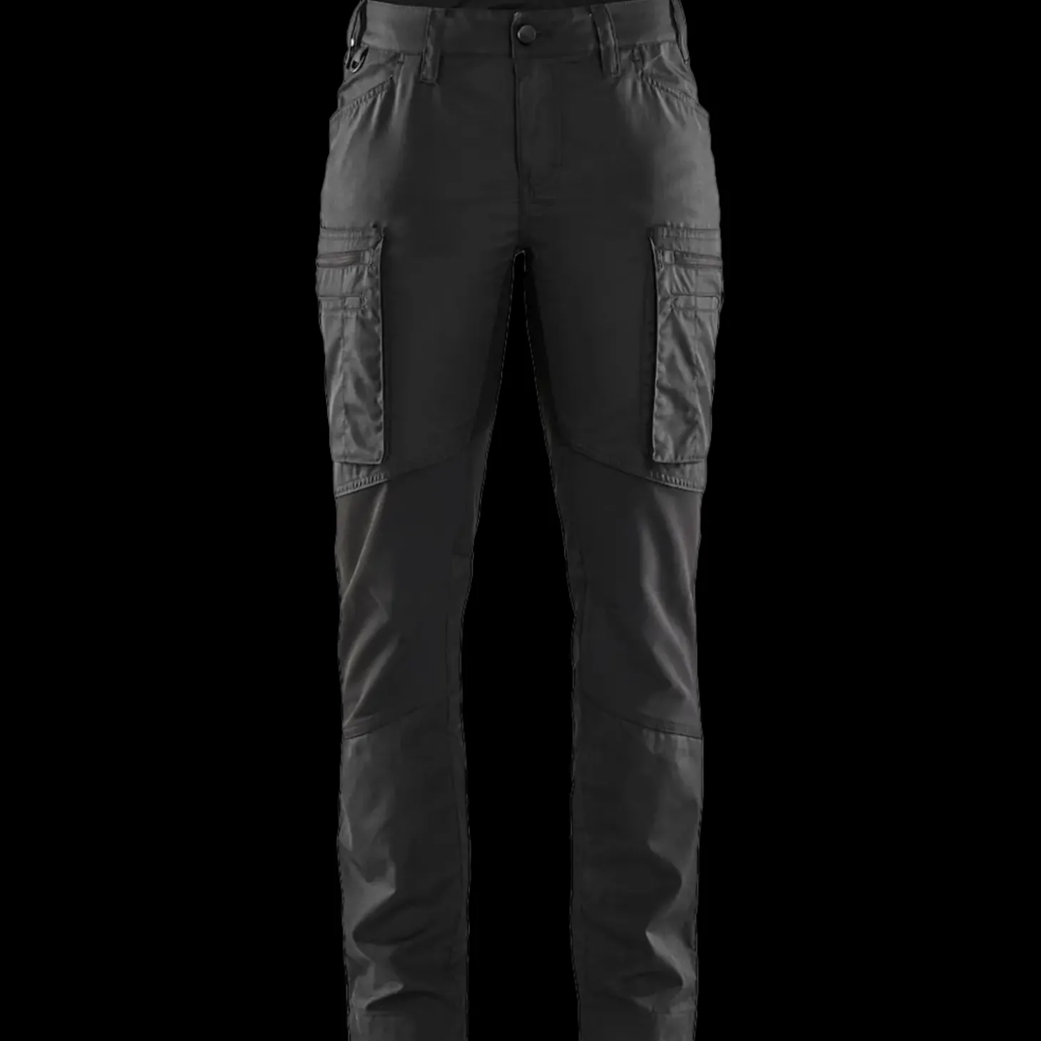 Moderne service buks i et let, men slidstærkt materiale, som er hurtigtørrende – hvilket gør buksen perfekt til indendørsarbejde, eller ude i varmt vejr. Modellen har smal pasform og elastik i livet, samt forbøjede ben for større komfort. For stor bevægelsesfrihed har buksen stretch i skridtet, på bagen og ved knæ. Buksen har pen- og knivlomme tilpasset højre- og venstrehåndet. Lårlomme med indvendig telefonlomme i mesh, samt mulighed for at forlænge ben til C100-str.
