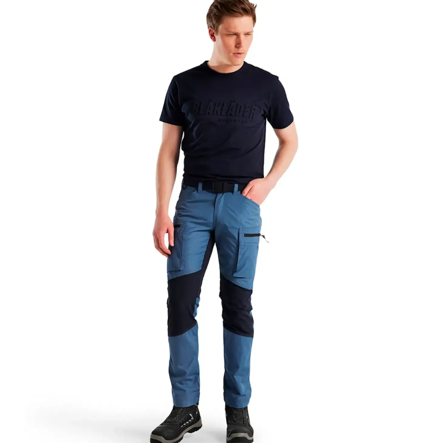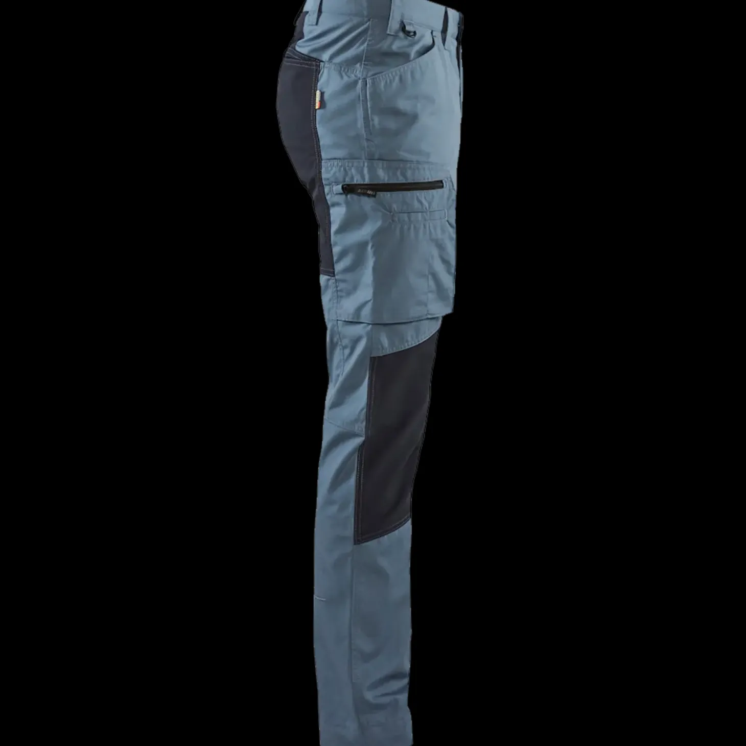 Moderne service bukser i et let, men slidstærkt materiale, som er hurtigtørrende – hvilket gør buksen perfekt til indendørsarbejde eller ude i varmt vejr. Modellen har smal pasform og elastik i livet, samt forbøjede ben for større komfort. For stor bevægelsesfrihed har buksen stretch i skridtet, på bagdelen og ved knæ. Buksen har pen- og knivlomme tilpasset højre- og venstrehåndet. Lårlomme med indvendig telefonlomme i mesh, samt mulighed for at forlænge ben til C100-str.