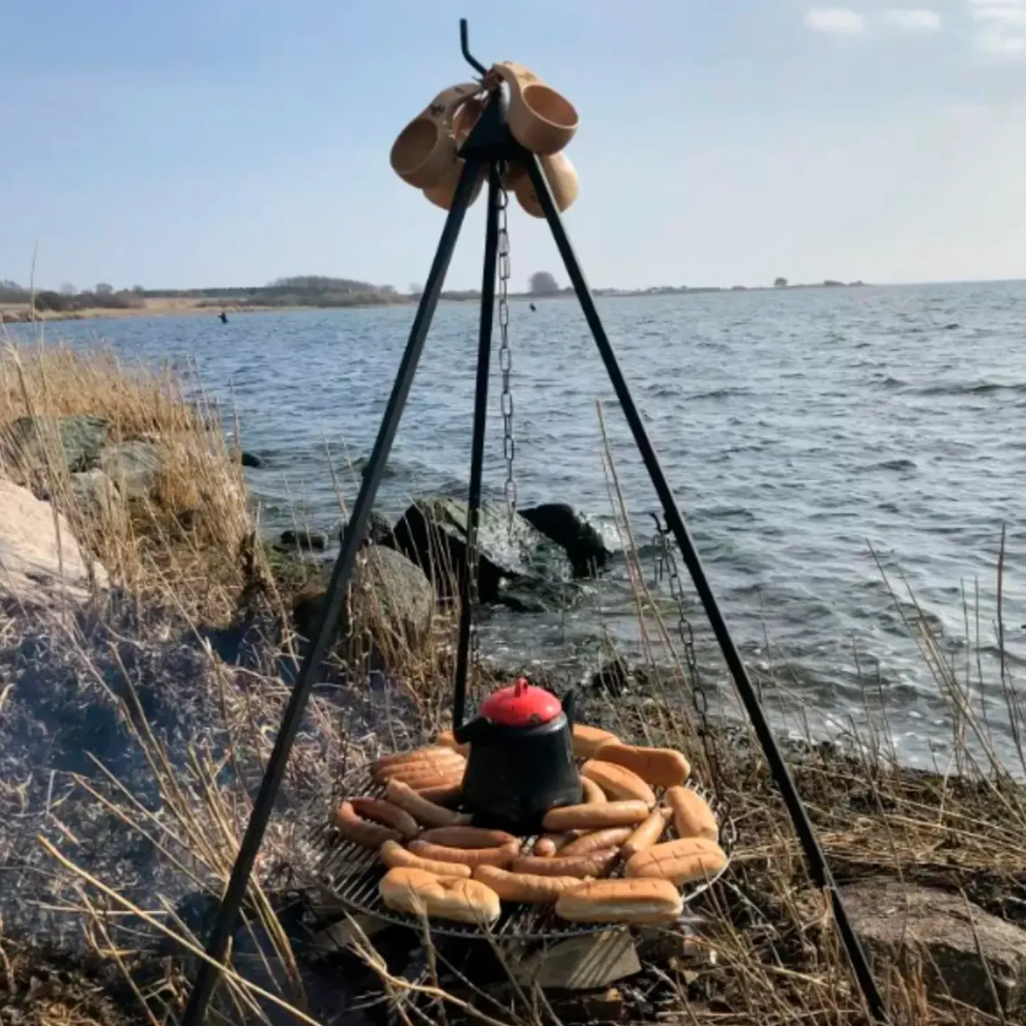 Med dette basis bålsæt er du ikke længere begrænset til det traditionelle snobrød eller skumfiduser, men kan invitere familie og venner på et komplet måltid. Du kan med fordel medbringe det mobile, udendørs køkken til sommerhuset, stranden eller til andre udendørsture.