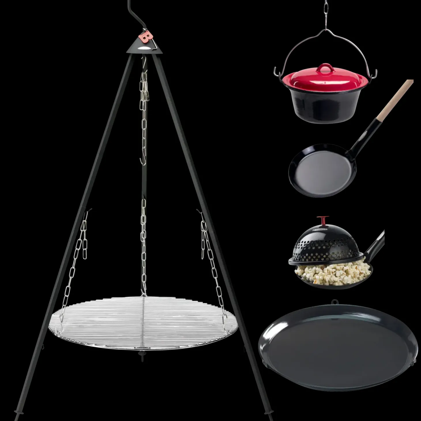 Udover de mange muligheder som Bon-Fire basissæt giver, er sættet udstyret med flere funktionelle dele, såsom en solid grillrist med en optimal størrelse, der giver dig godt plads til gryder og pander. Sættet består ligeledes af tre ben samt kæder til ophæng af grillristen. De tre ben kan deles på midten og tager ikke megen plads hvor end om sættet skal opbevares eller transporteres.