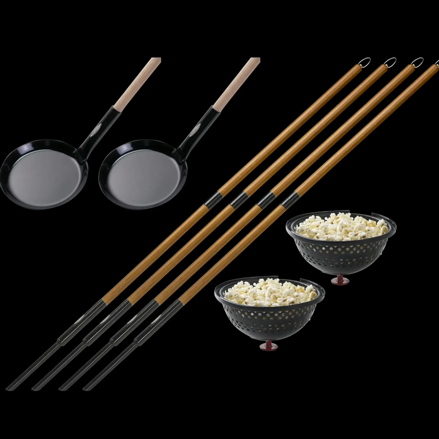 Der er mange muligheder med Bon-Fire tilbehørssæt der inviterer på hygge foran bålet. Snobrødspindende gør det nemt at tilberede de lækreste sprøde brød, mens du kan glæde børnene med lune popkorn eller pandekager, der hurtigt er lavet ved brug af poptoppen og pandekagepanden. Bon-Fire basis bålsæt er et godt alternativ til den traditionelle både at grille på.