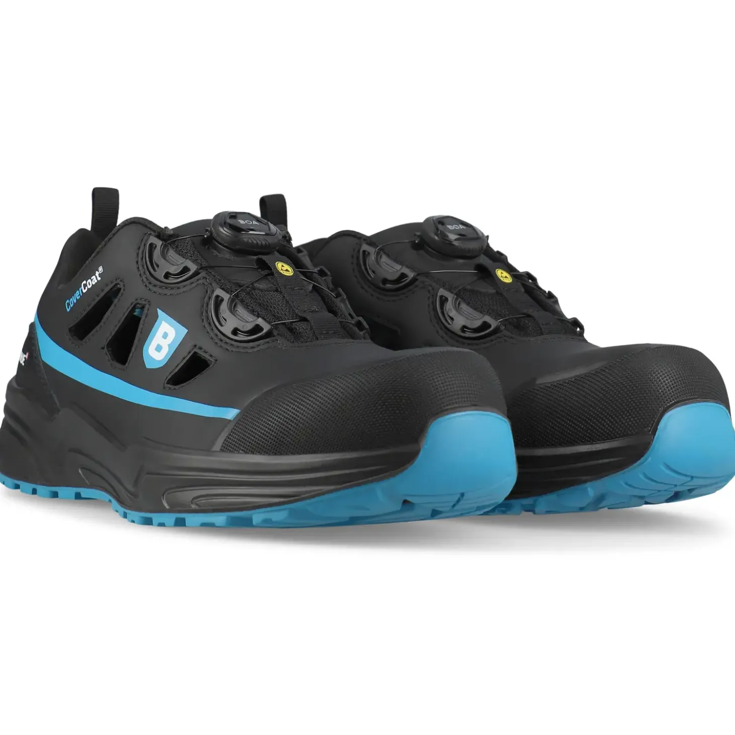 Du får en let, slidstærk og fleksibel sikkerhedssko, som har det orgianale BOA fit system. Skoene er fremstillet af et microfiber materiale som er hurtigtørrende og åndbart og desuden har de kun få syninger. Du vil nemt kunne rengøre skoene, så de altid fremstår præsentable og pæne. Ydersålen er lavet af PU/gummi, som gør at skoene er fleksible, stødabsorberende og skridhæmmende.