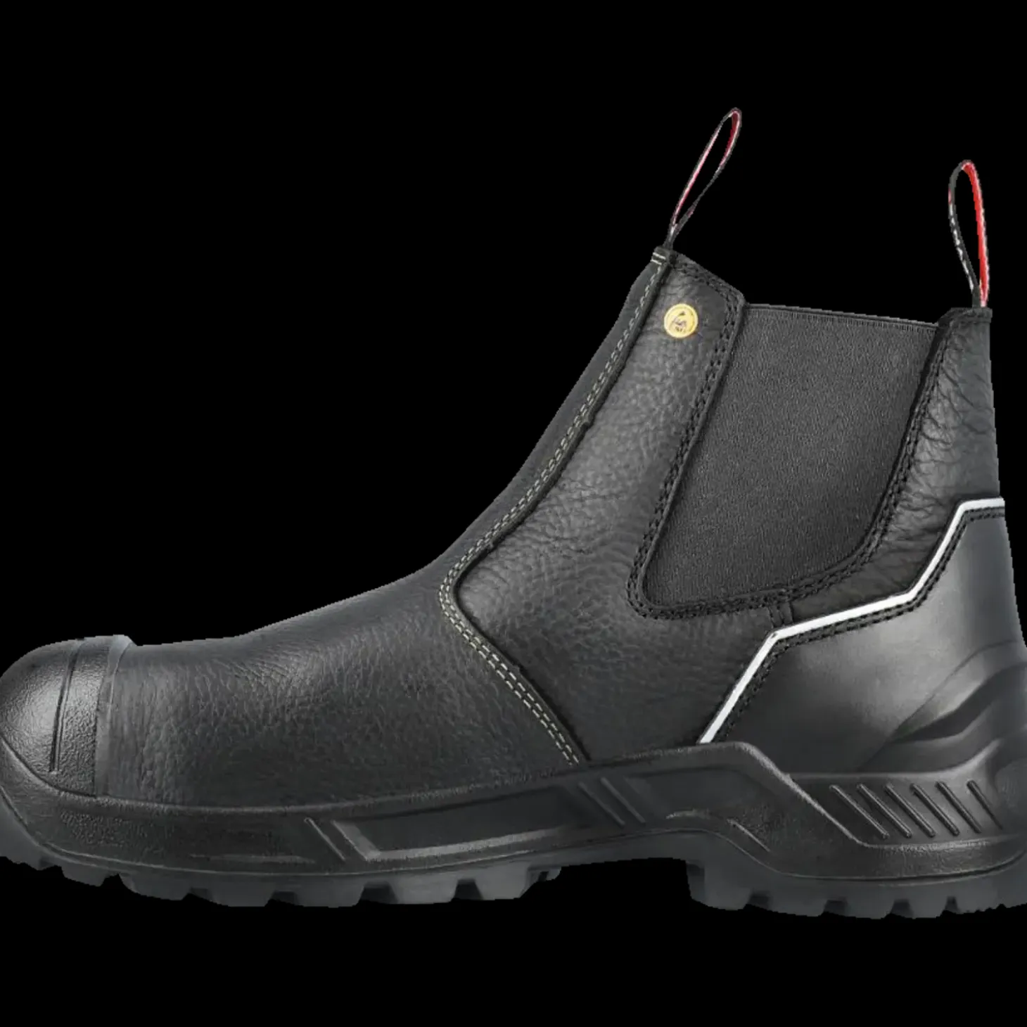 Robust sikkerhedsstøvlet af åndbart og vandafvisende læder. Med kraftige nylonstropper og bred elastik i skaftet, som gør det nemt at få støvletten af og på. Ekstra fleksibel og stødabsorberende ydersål af PU/nitrilgummi, der modstår varme op til 300 °C (HRO). Med ProNose for ekstra slidstyrke. PVC-fri, ESD-godkendt og med alu tåværn og fiber sømværn. Str. 39-48. S3 SRC