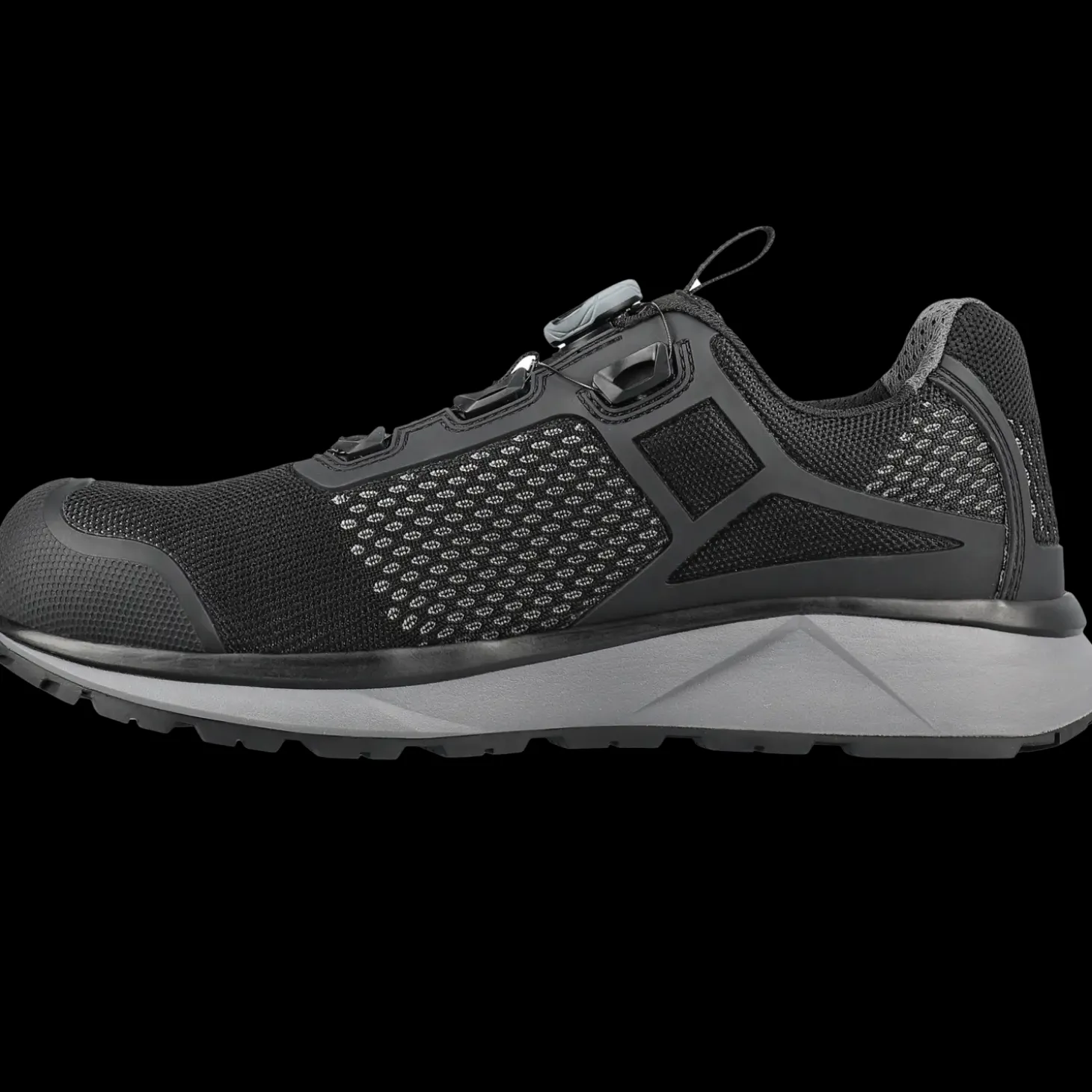 Let som aldrig før – selvom den er ret fed! Overdelen er af en strikket, åndbar polyester med fede detaljer i et KPU-materiale, så skoene både bliver mere stabile og slidstærke. At overdelen er strikket giver skoen en fleksibel pasform og reducerer spild i produktionen. Og så er overdelen desuden behandlet med en vandafvisende coating, som sikrer dig tørre fødder. I 903 Phoenix bliver du en hurtig starter takket være det smarte lukkesystem BOA® Fit System. Ligger du meget på knæ i dit arbejde? Så bliver du også glad for 903 Phoenix; den har nemlig en ekstra slidstærk ProNose, der er godkendt efter en ny standard til knælende arbejde. Du vil stå ekstra godt fast på den skridhæmmende gummi-ydersål, og den bløde, stødabsorberende mellemsål i EVA-skum giver dig en oplevelse af komfort og fleksibilitet. Det grove sålmønster med brede riller leder nemt jord, sand, vand og mudder væk fra sålen og giver dig et ekstra godt fodfæste. Du bliver flyvende i Brynje 903 Phoenix!