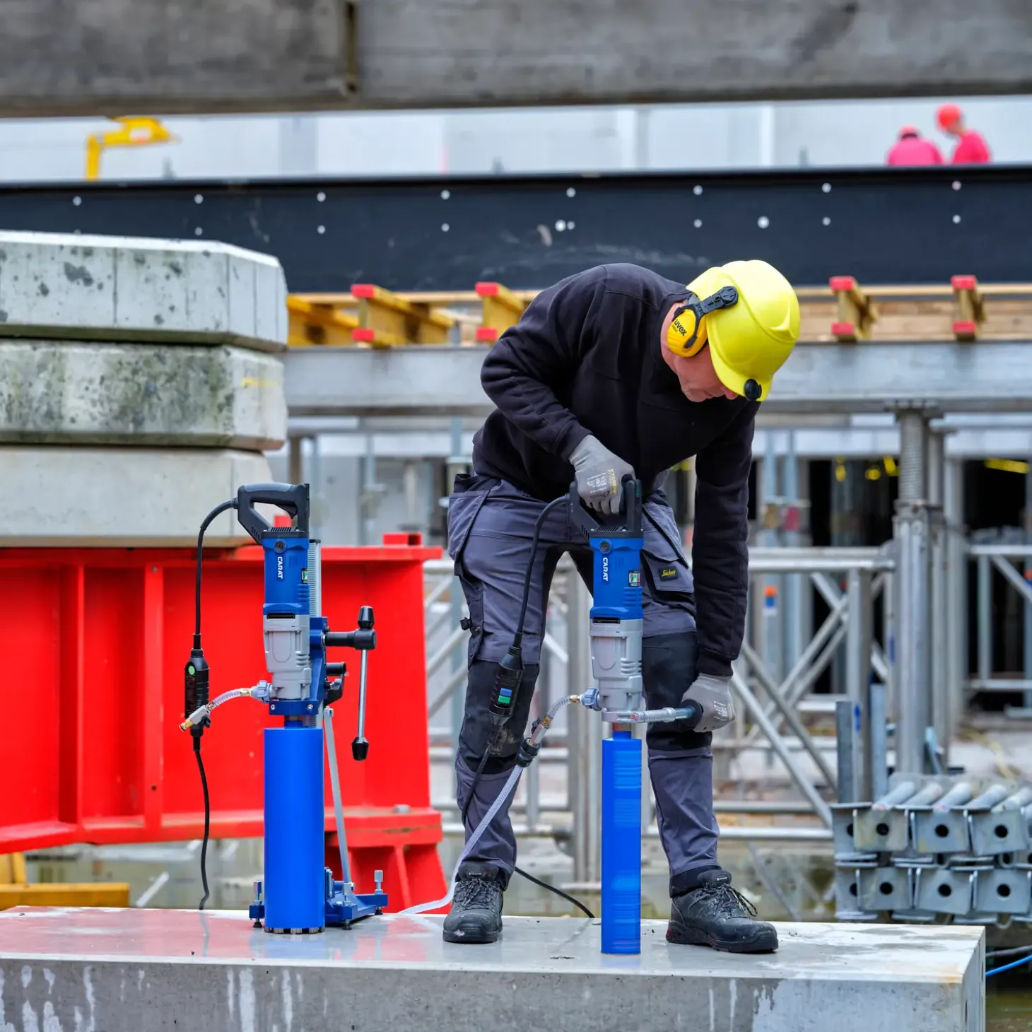 - Max Ø håndholdt: I beton: Ø 70 mm/ i mursten: Ø200 mm