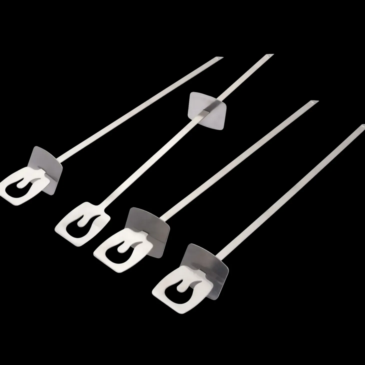 4 styk spid i rustfrit stål. Passer perfekt til GRILL+® Bradepande som gør det nemt at ryge og marinere dit kød på spid. Spiddene er for synet med praktisk plade, der nemt løsner maden fra spiddet. Tåler opvaskemaskine.