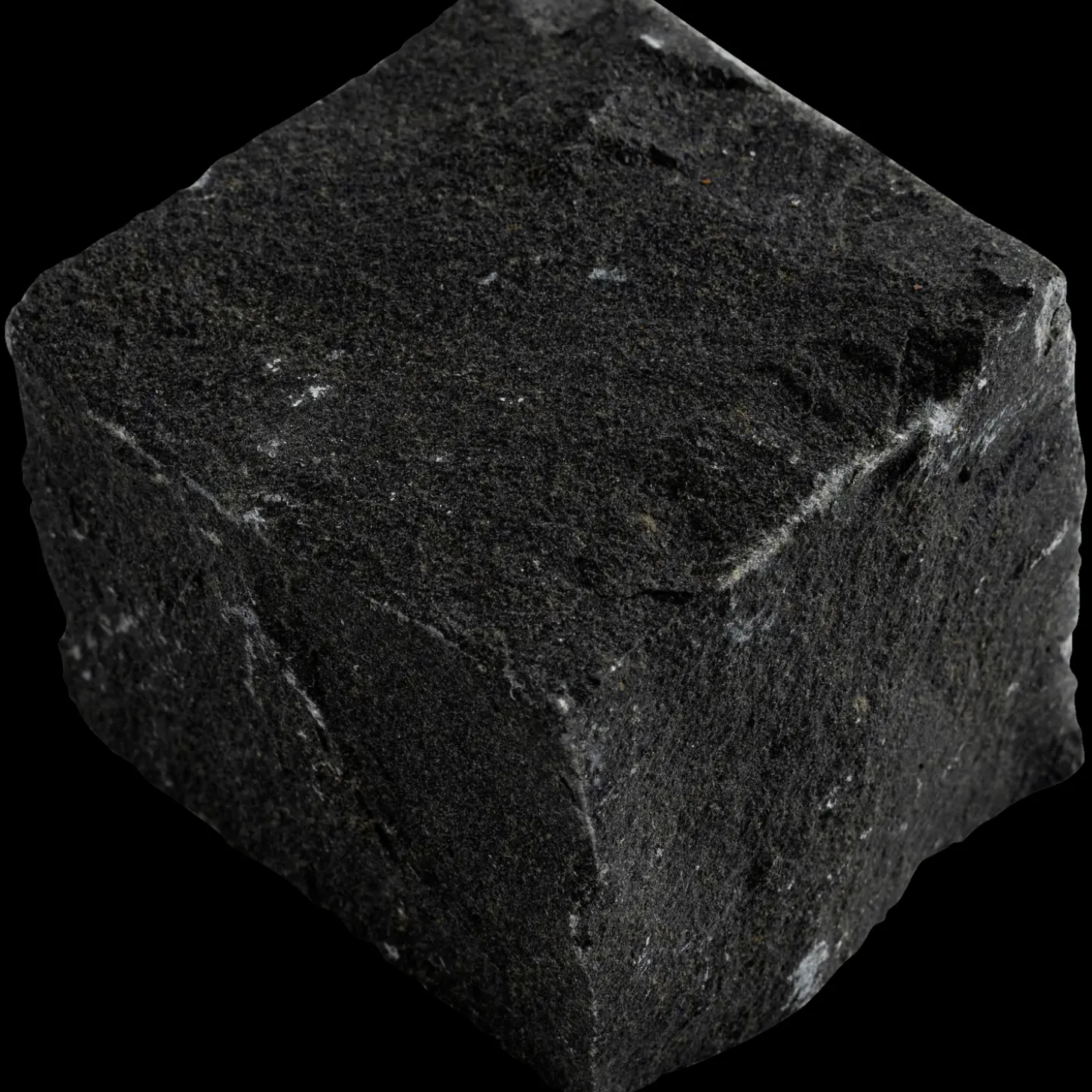 Håndhuggede chaussésten i sortgrå kinesisk G685 basalt. Chausséstenene egner sig godt til belægninger.