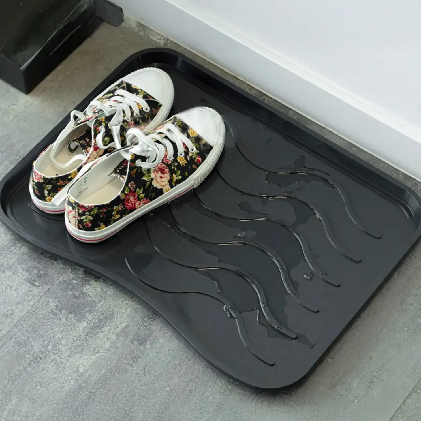 Smart og funktionel skobakke med målene 38×50 cm, fremstillet i 100% sort genbrugsplast, bakken er hurtig og nem at rengøre hvilket, kan gøres blot med en fugtig klud eller en tur under vandhanen.