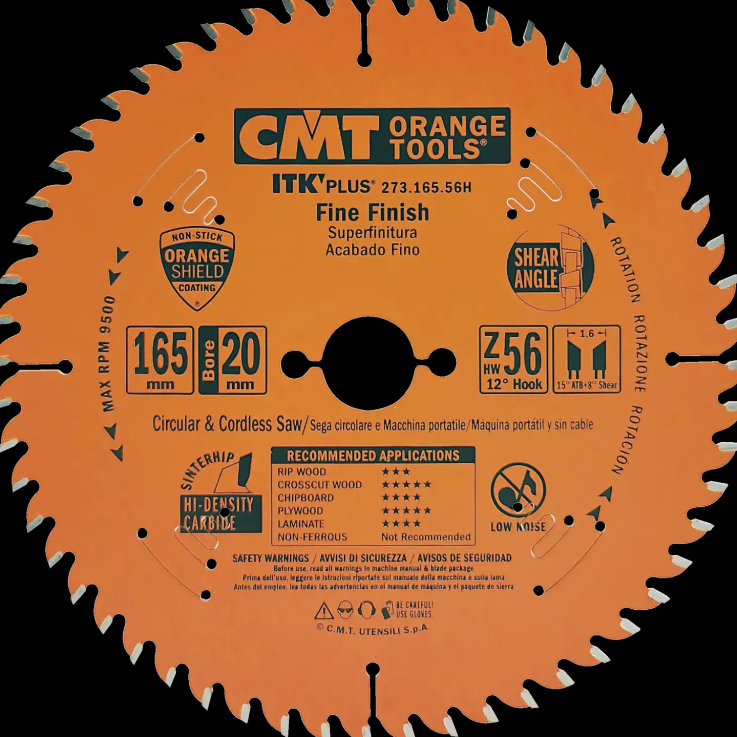 CMT savklinge 165 x 1,6 x 20 mm til skæring i træ, krydsfiner, laminat m.m.