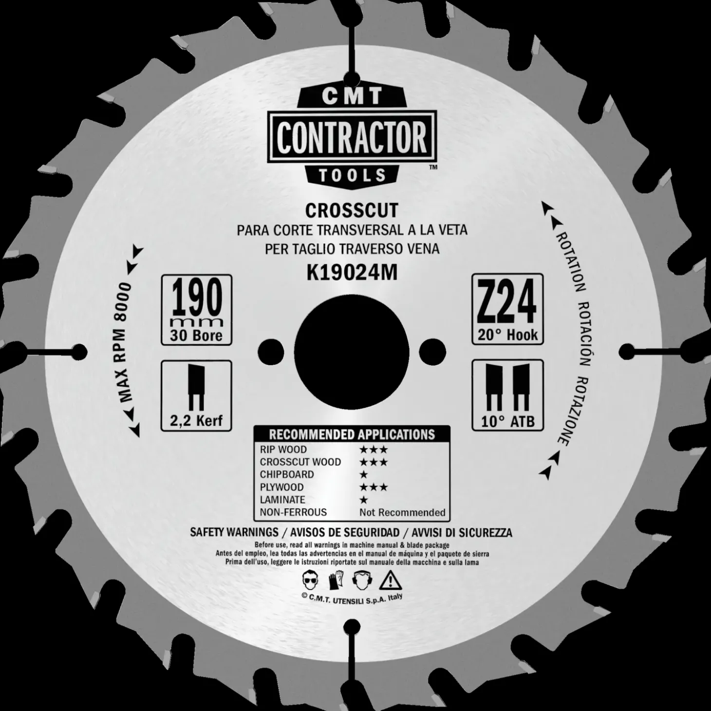 CMT Contractor savklinge er til forskellige rundsave til længde- og trævskæring i træ og lign. materialer. Designet til bygningsarbejde, nedrivningsarbejde samt andre opgaver med træbearbejdning.