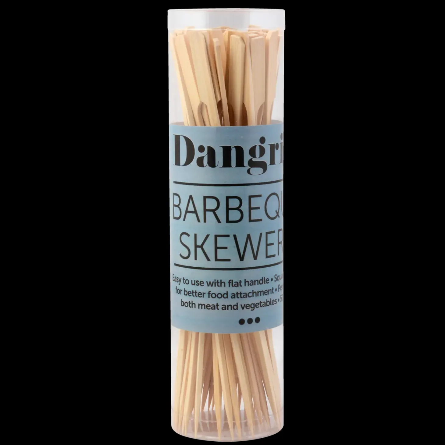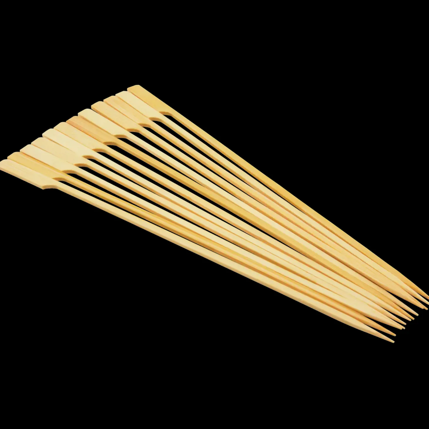Praktisk bambus grillspyd der er flade, så grillemnerne ikke ruller rundt når du vender spydene, forsynet med lille fladt greb i den ene ende, spids i den anden.