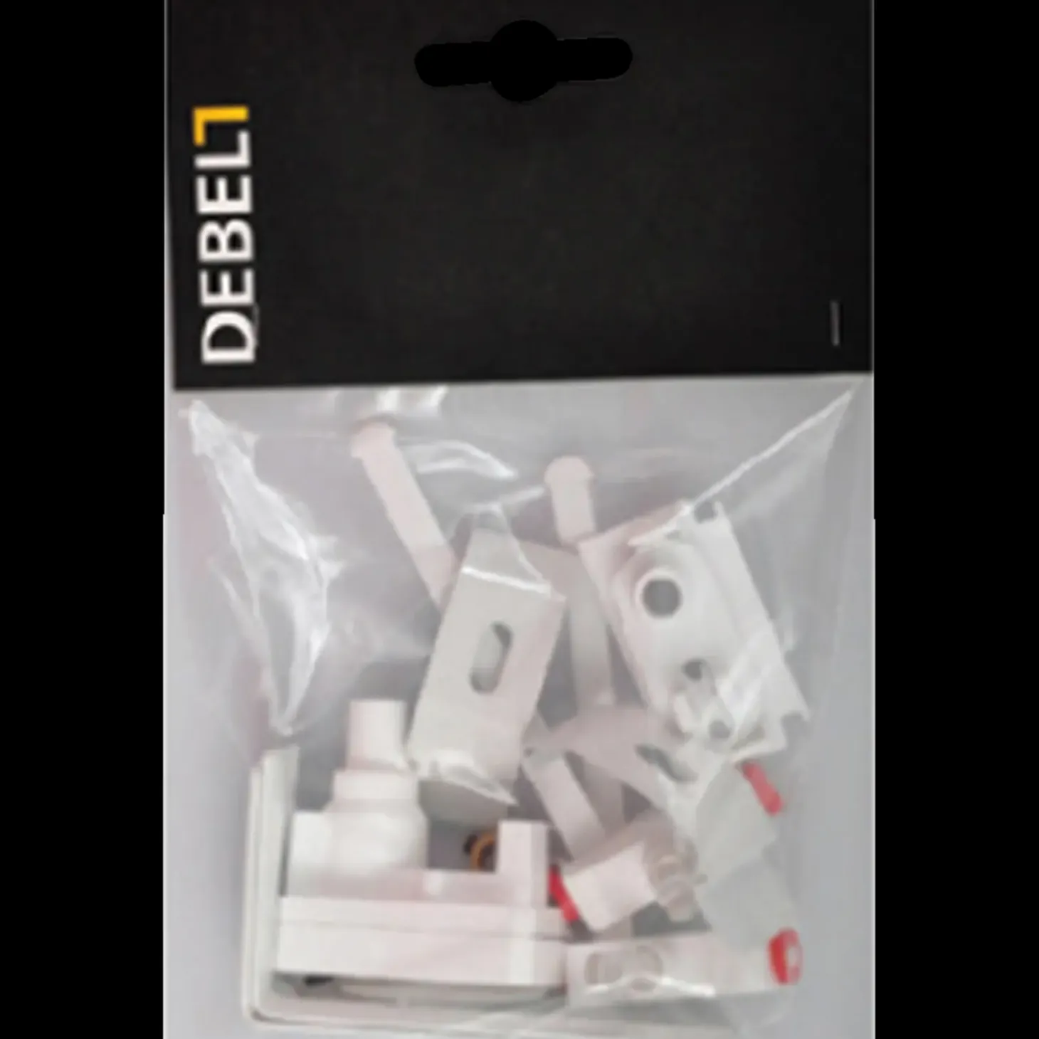 Kitsæt til ophængning af lamelskinne med vinkelbeslag, møtrikker og bolte.