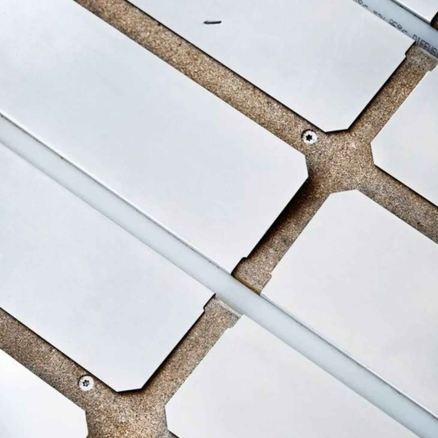 Pladerne er fremstillet i aluminium, som er en af den bedste varmeledende materialer. Meget nem montering, takket være de to forprægede steder til afkortning, som gør det nemt at tilpasse længden. Nemme at håndtere og transportere da de kun vejer 300 gram pr. stk.