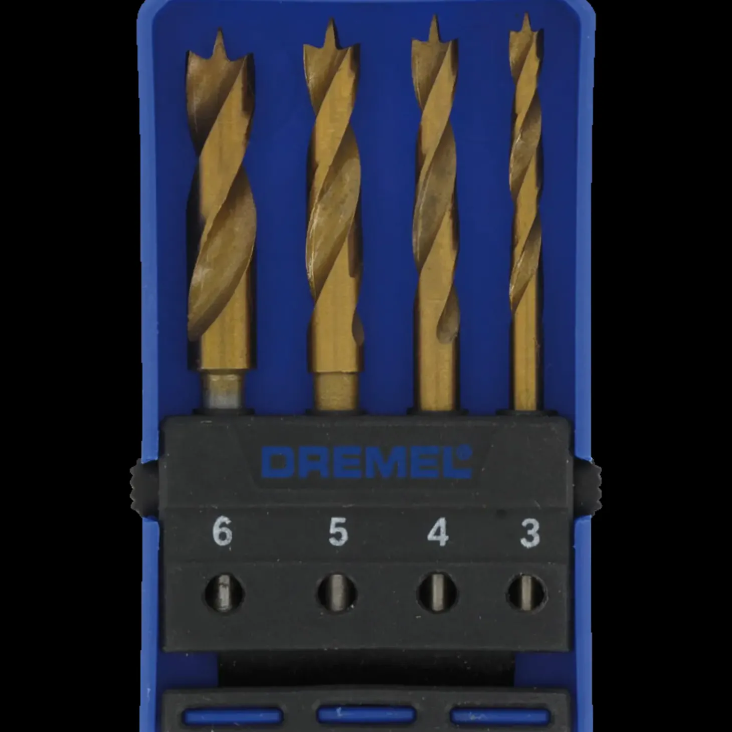 Dremel-træboresæt indeholder 4 bor, inklusive et centreringsbor til boring i træ.