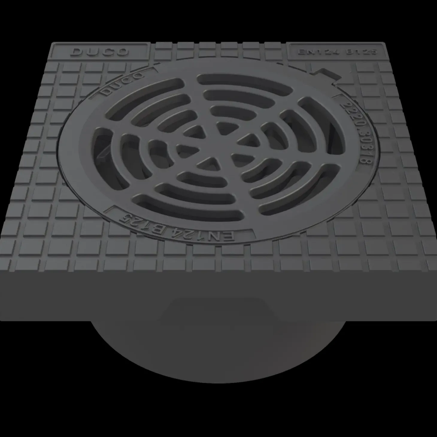Firkantet støbejernsafdækning med rist til områder med let trafik. Afdækningen er dimensioneret til overkørsel med personbiler og varevogne. Den er fremstillet i støbejern og leveres med skørt til Ø315mm opføringsrør.