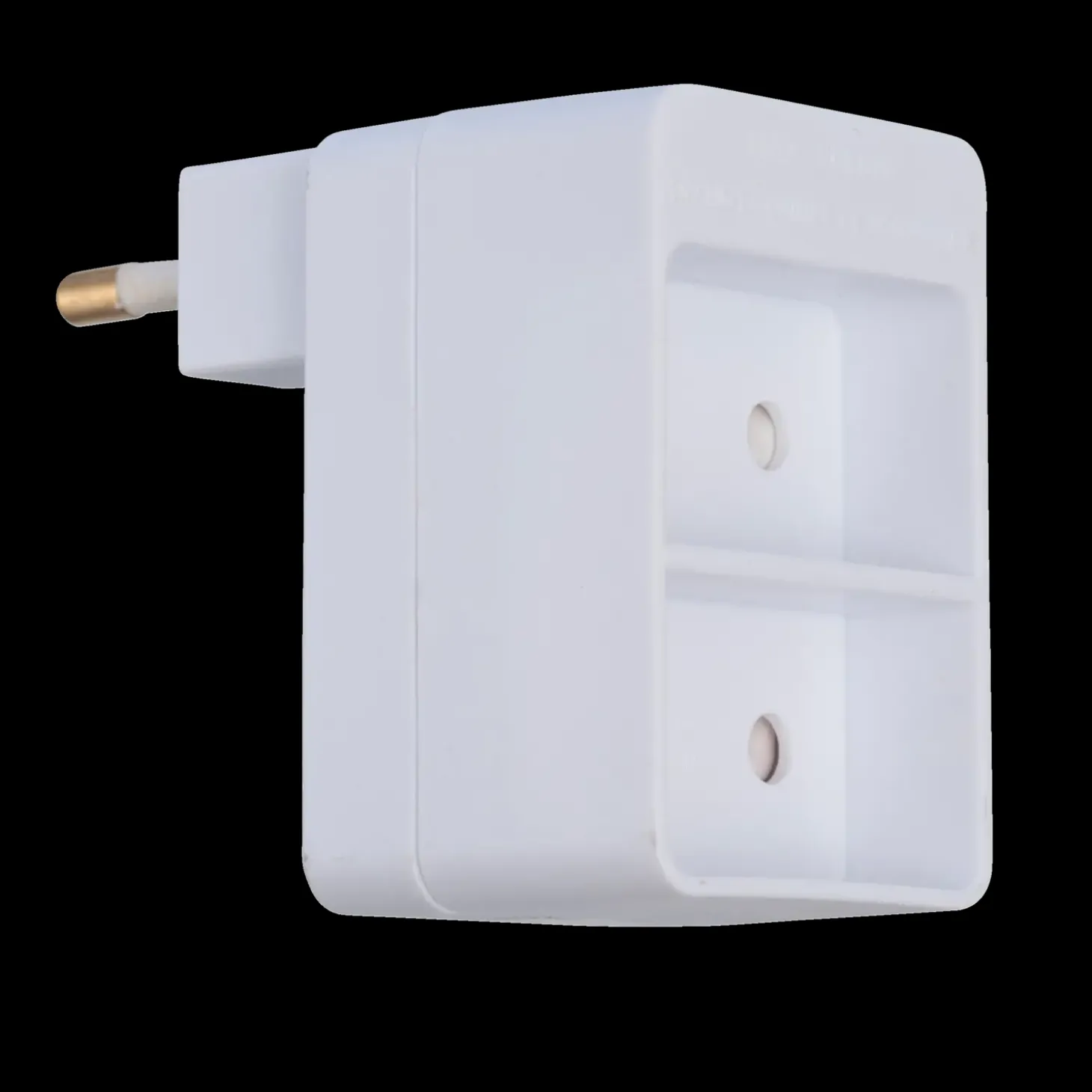 E-line forgreningsled uden jord børnesikker. 2 flade udtag, kan bruges i både enkel og dobbelt stikkontakt,