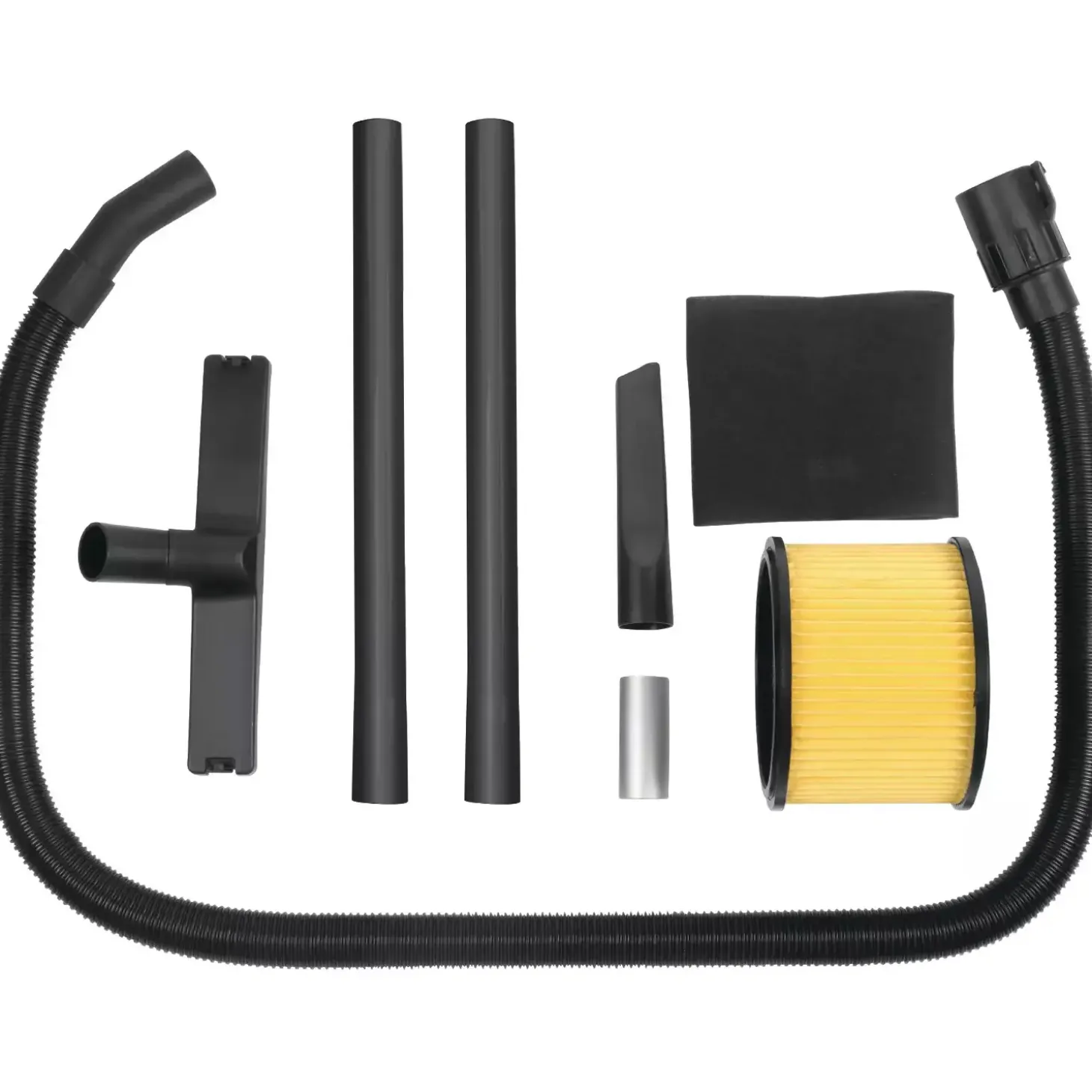 Enheden leveres komplet med en plast sugeslange på 2,50 meter Ø 36 mm med høj luft /snavs flow og en 2-delt forlængerrør, gulvmundstykke og sprækkemundstykke og skumfilter og plisseretfilter.
