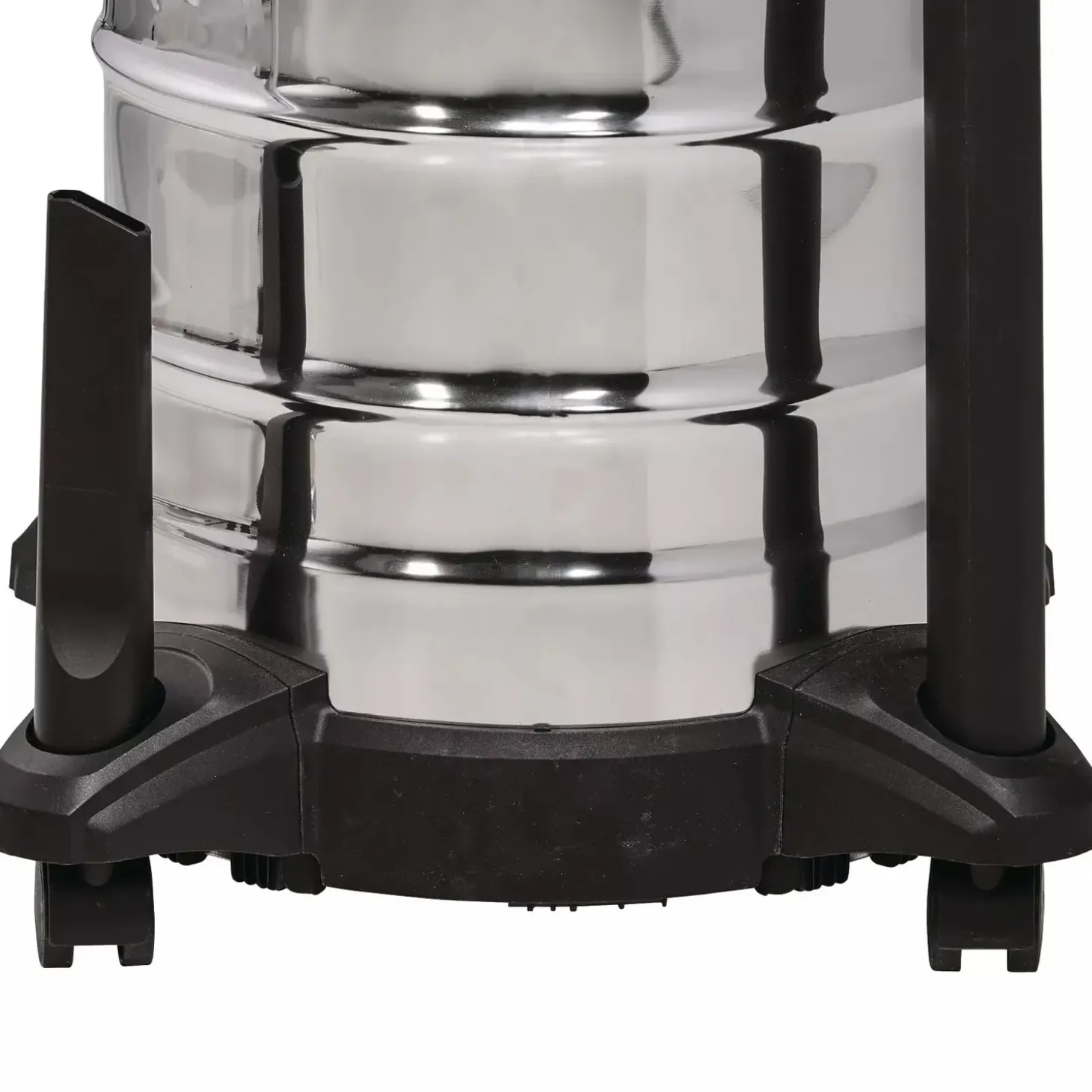 Støvsugeren er udstyret med en rustfast og robust ståltank med en kapacitet på 30 liter. En integreret afløbsskrue gør det nemt at tømme tanken for vand. Udblæsningsstudsen anvendes til at blæse snavs og skidt væk fra steder der er vanskelige at nå.