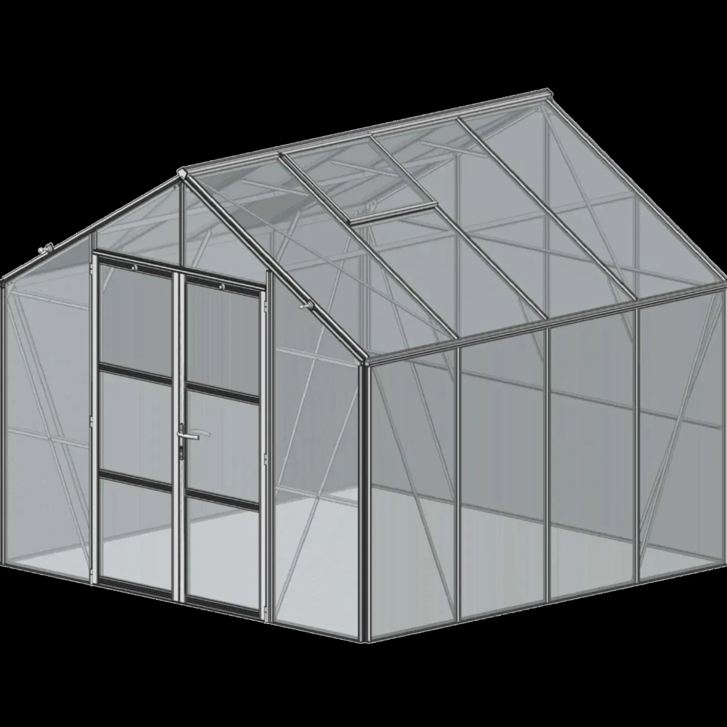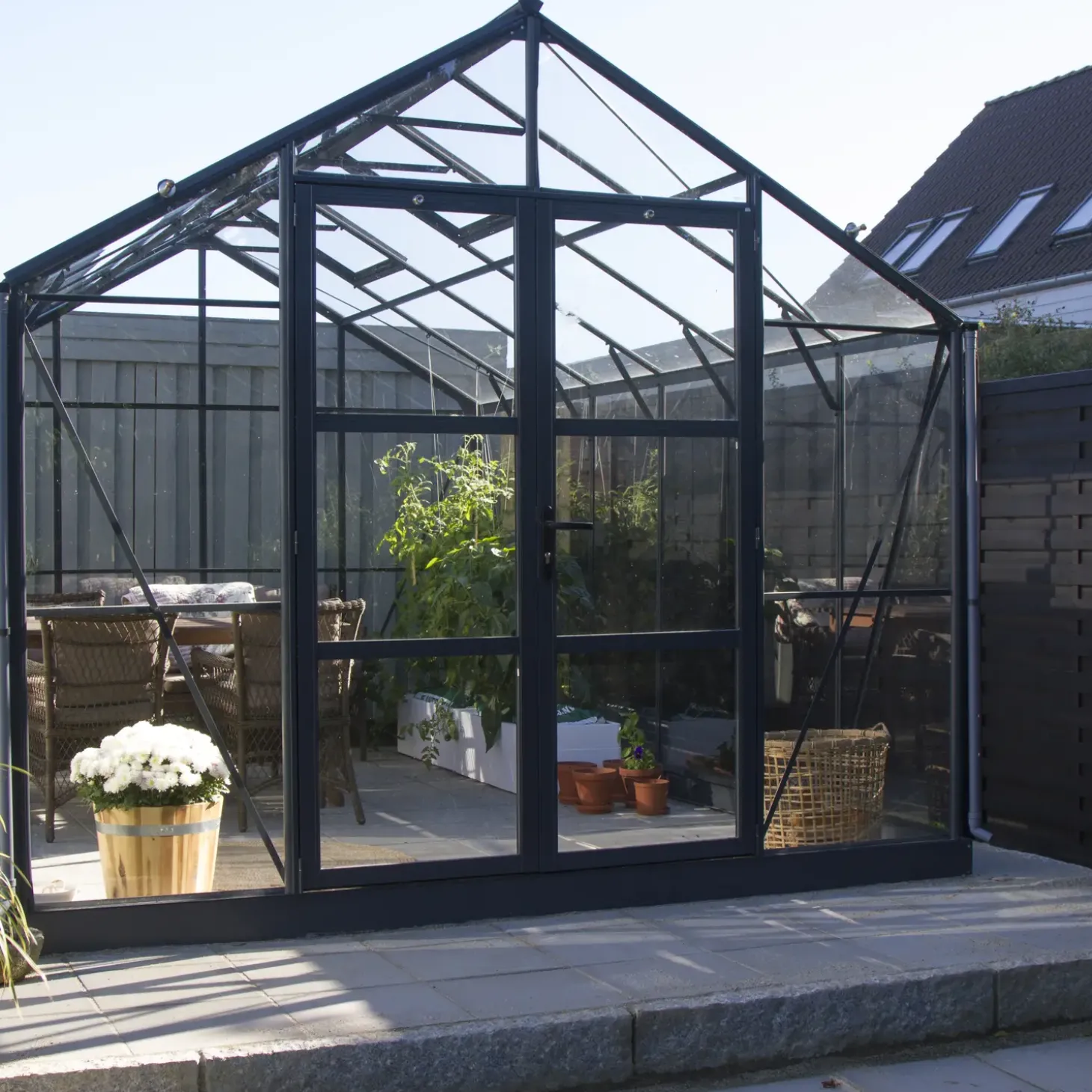 - Dobbeltdør giver nem adgang til drivhuset