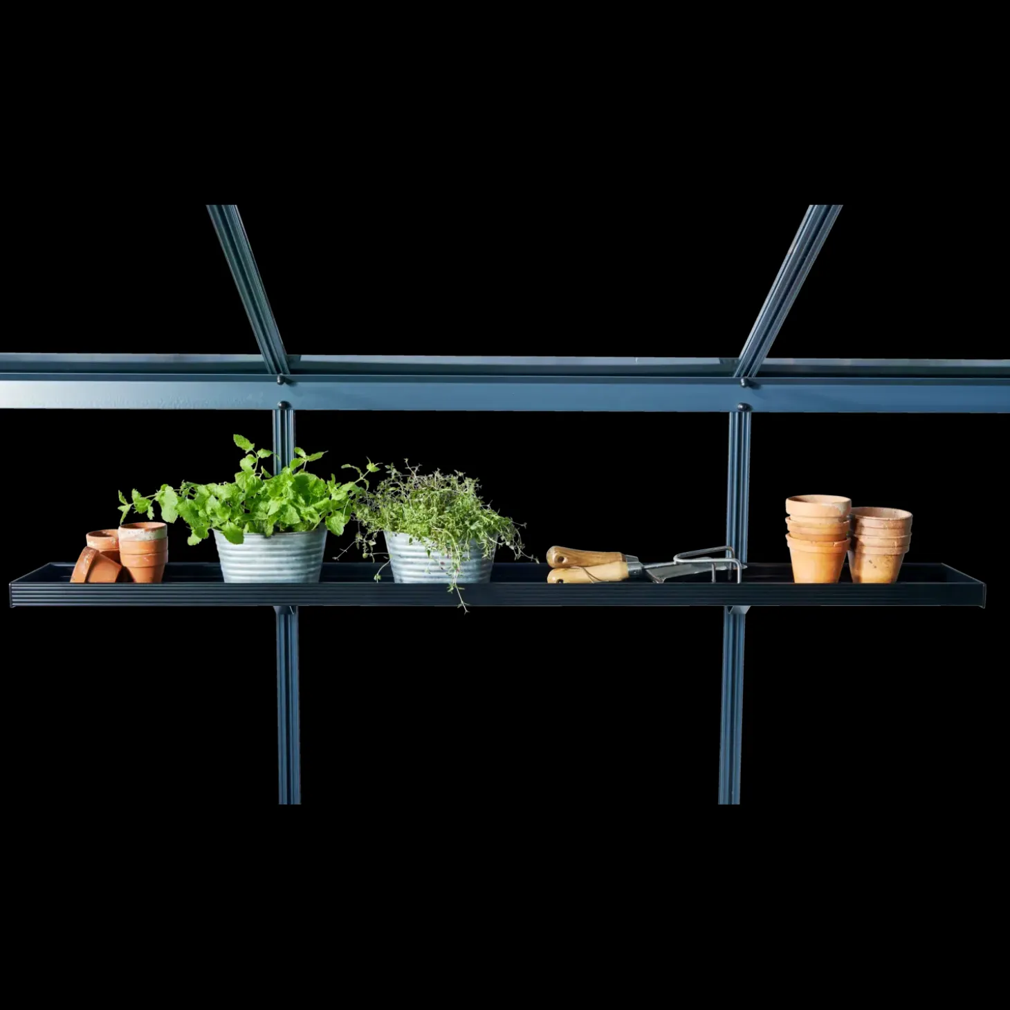 - 4 mm hærdet glas sikrer et godt udsyn fra drivhuset og splintres i mange små stykker hvis uheldet er ude, så der er mindre risiko for at skære sig