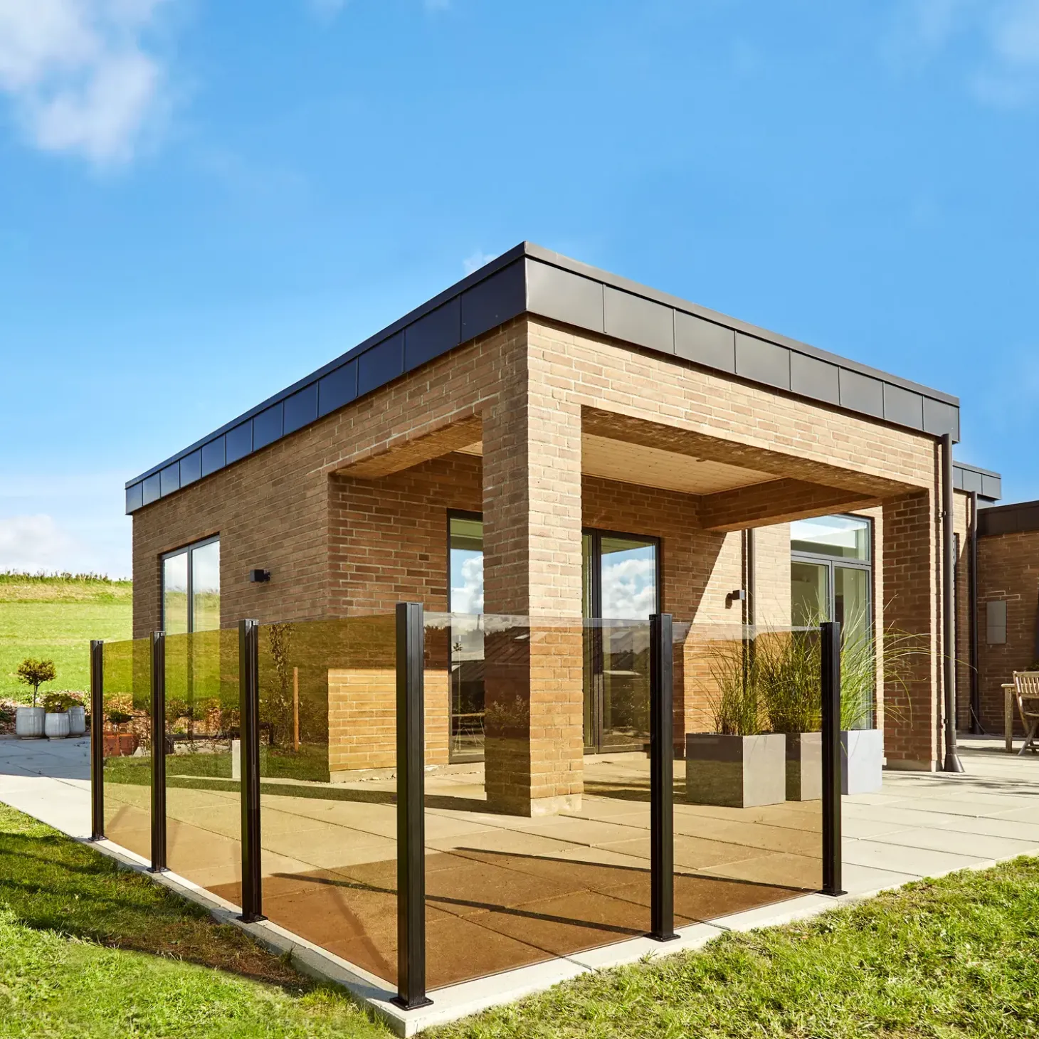 Vedligeholdelsesfrit, stilrent Elmholm komposit hegn med smoke glas