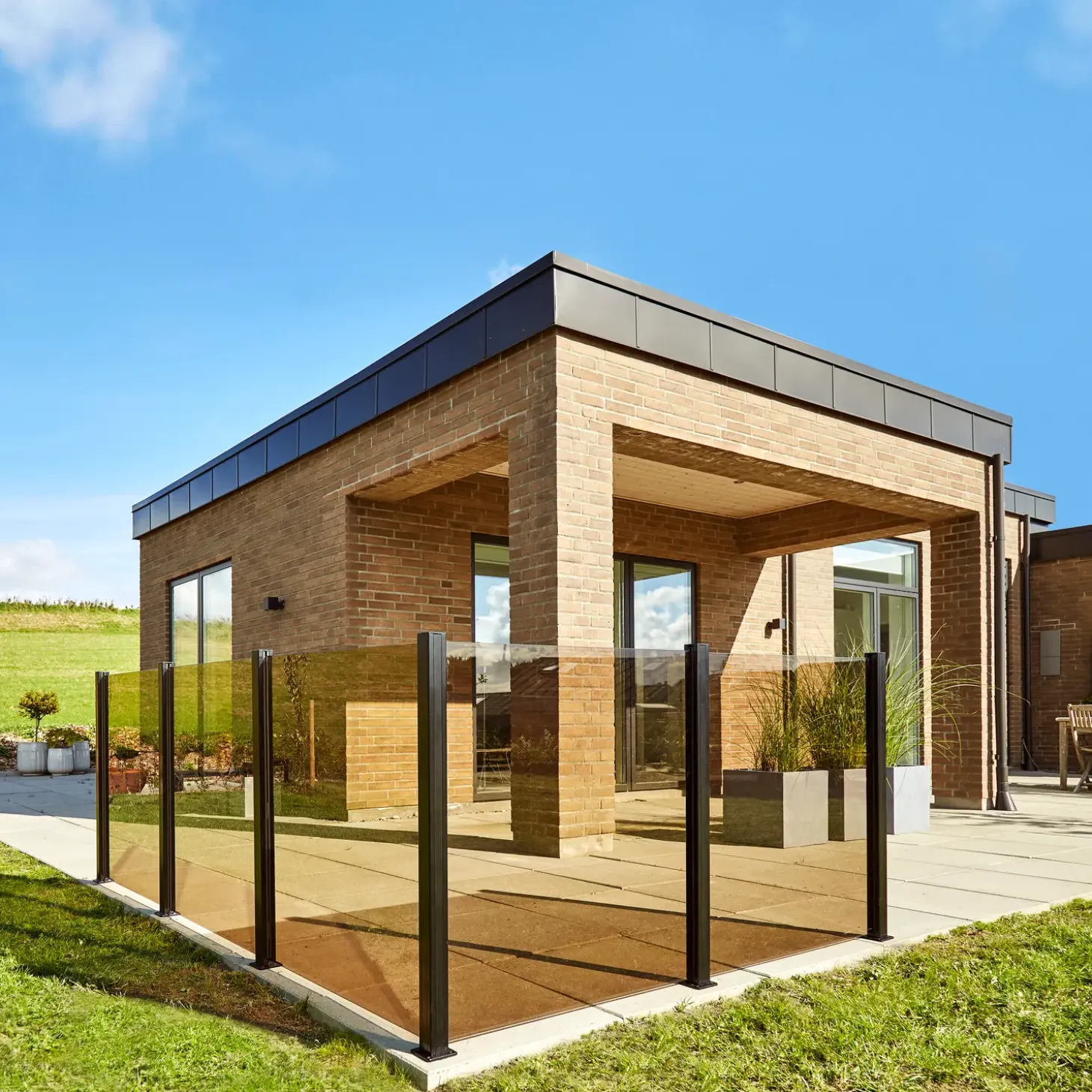 Vedligeholdelsesfrit, stilrent Elmholm komposit hegn med smoke glas