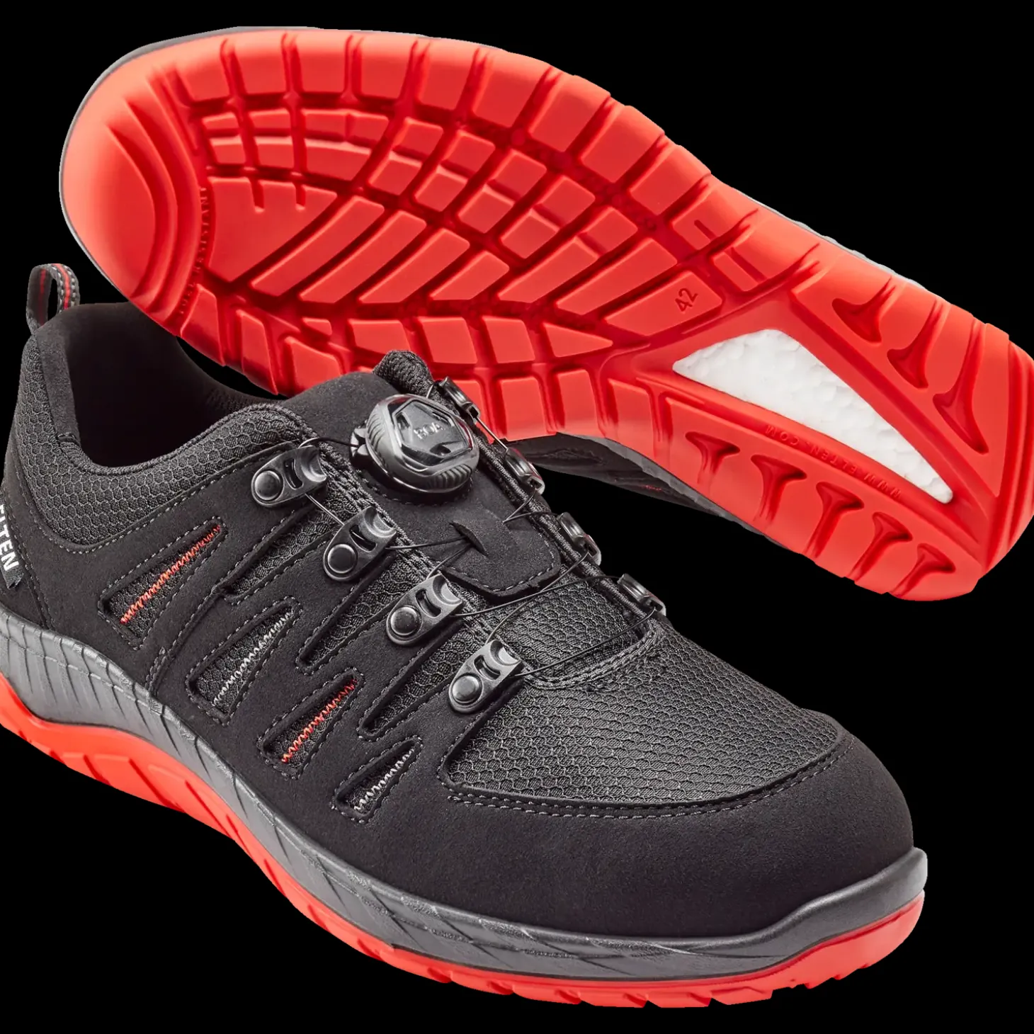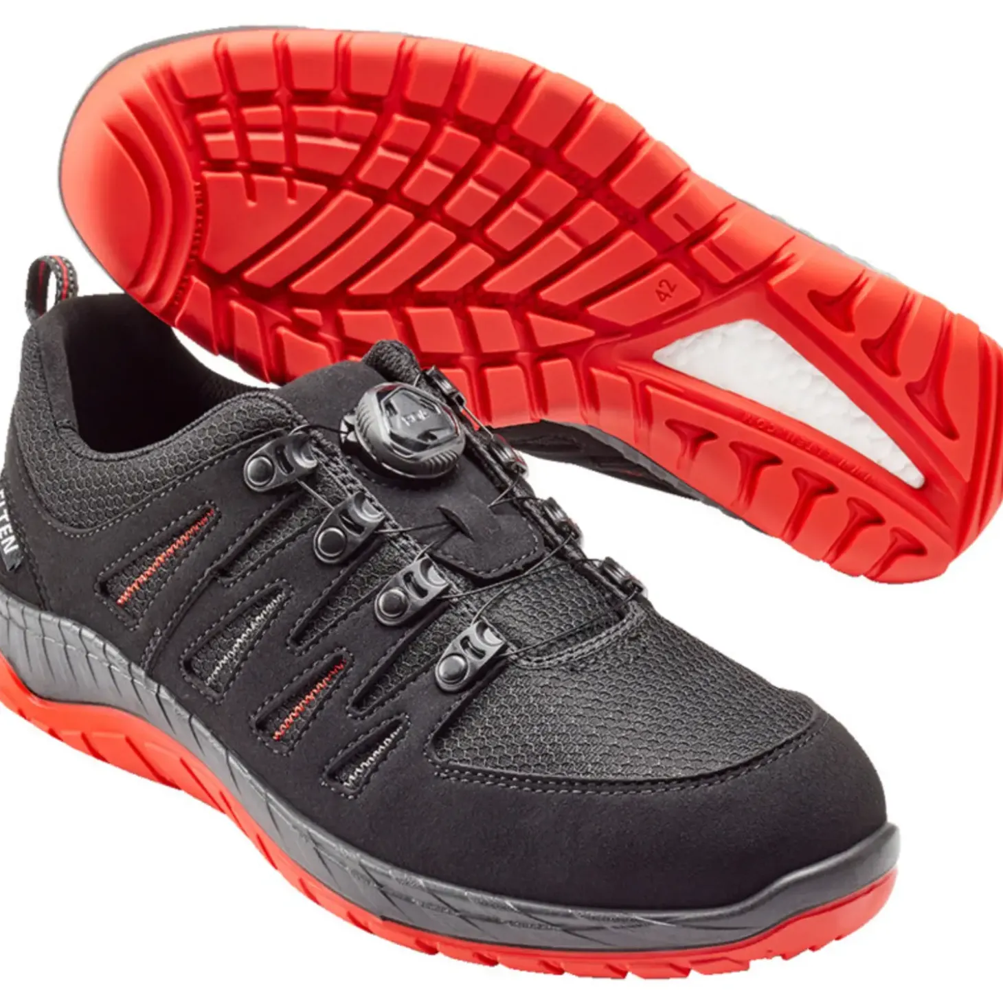 Sporty og let sikkerhedssko i slidstærk og åndbart amteriale. Sikkerhedsskoen er designet med stødabsorberende, åndbart og svedtransporterende indlægssål og med Boa-lukkesystem, der gør skoene nemme at åbne og lukke.