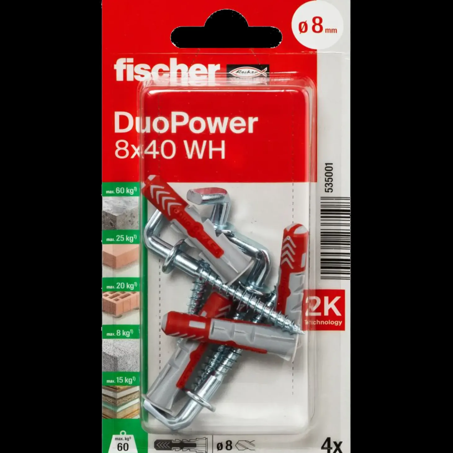 Fischer DuoPower universaldybel med vinkelkrog 8×40 mm 4 stk
