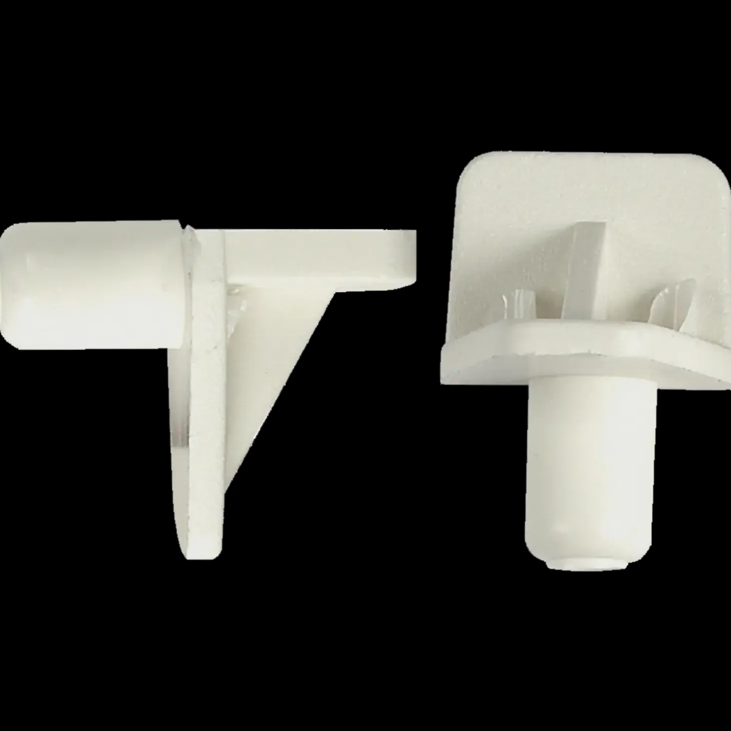 Hyldebærer i hvid nylon. Til indendørs brug. Indsættes i forborede huller Ø5 mm i skabe, reoler mv. til at bære fx lettere hylder.