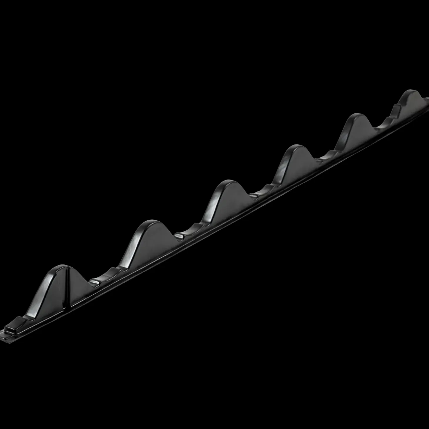 Bølgeklodserne leveres i sort gennemfarvet plast. Montering under udhænget gør overfladebehandling unødvendig.