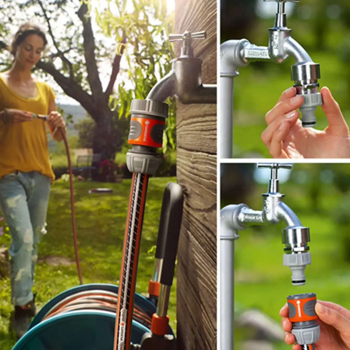 Med en Gardena hanekobling kan du nemt tilslutte en haveslange på en vandhane. Hanekoblingen er nem at montere takket være den specielle udformning.