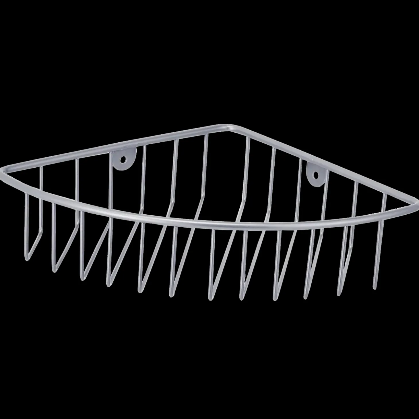 Hjørnehylde – opbevaringskurv, grå mat satin. Stål der er coated med grå mat satin overflade. Et stærkt materiale med en glat overflade. Skruemontering sikrer stabil montering.