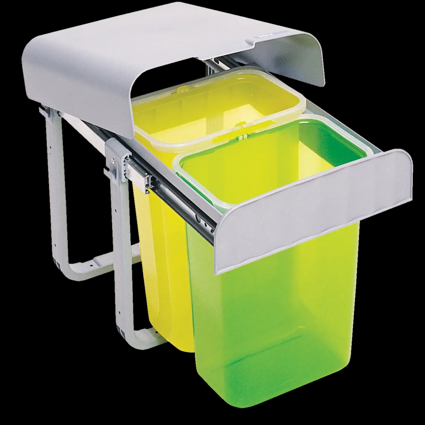 Grå affaldssystem på udtræksskinner med 2 x 8 L beholdere