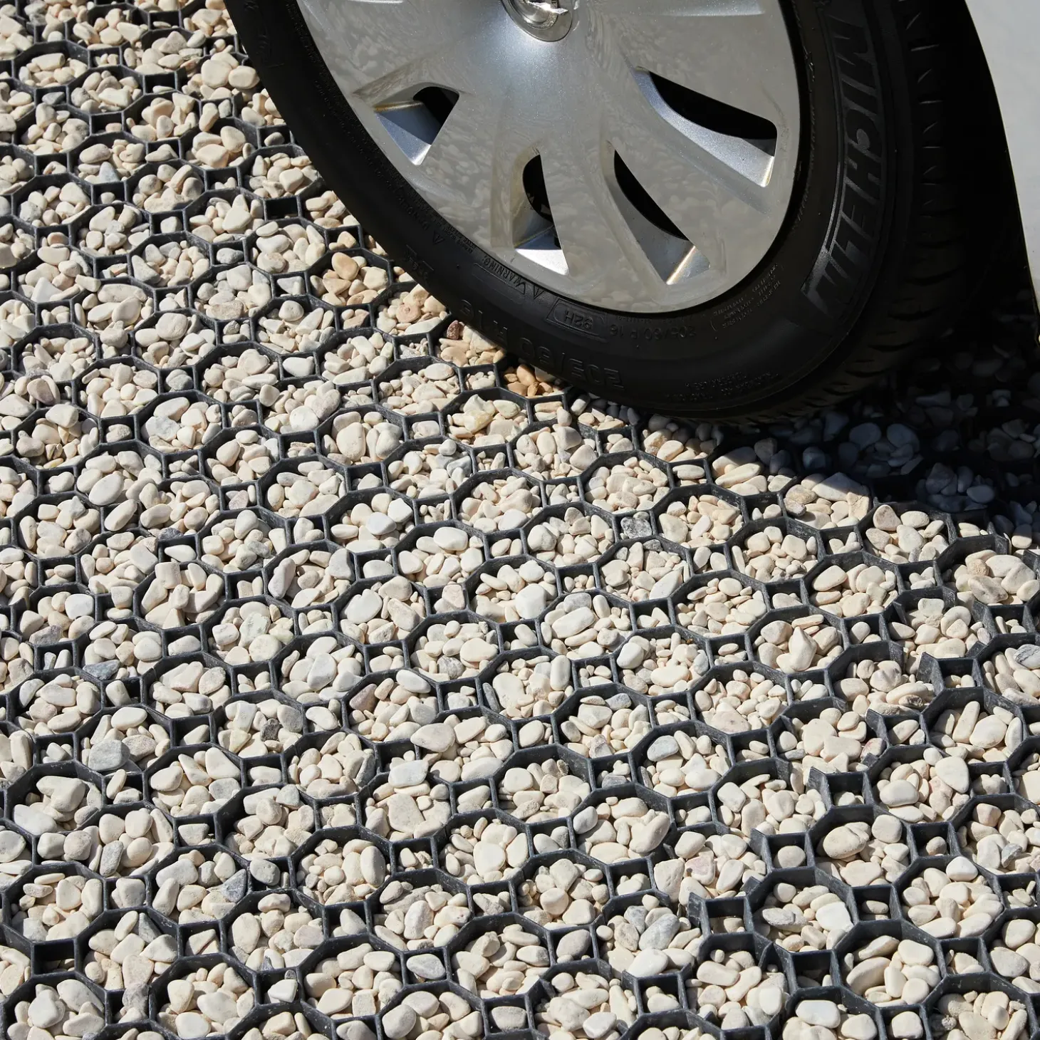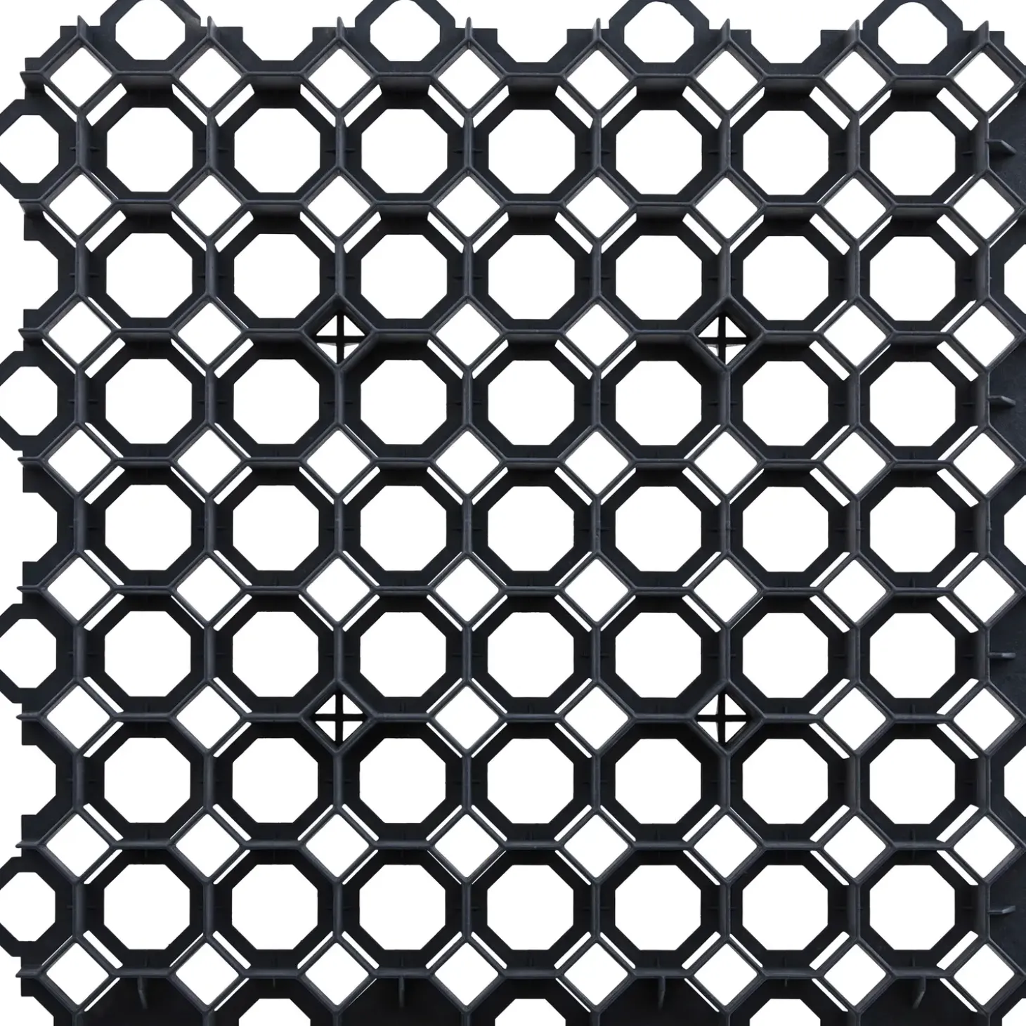 Holdbar græsarmering i med huller til dræn af regnvand. Styrker underlaget, modvirker erosion, så arealerne forbliver pæne. Pladerne sættes nemt op mod hinanden, og piggene ned i jorden holder dem på plads. 100% genanvendt plast (PE/PP). Dækningsareal 0,2237 m2/stk. Vægtbelastning op til 160 t/m2. 980 gram. 47x47x3.6 cm.