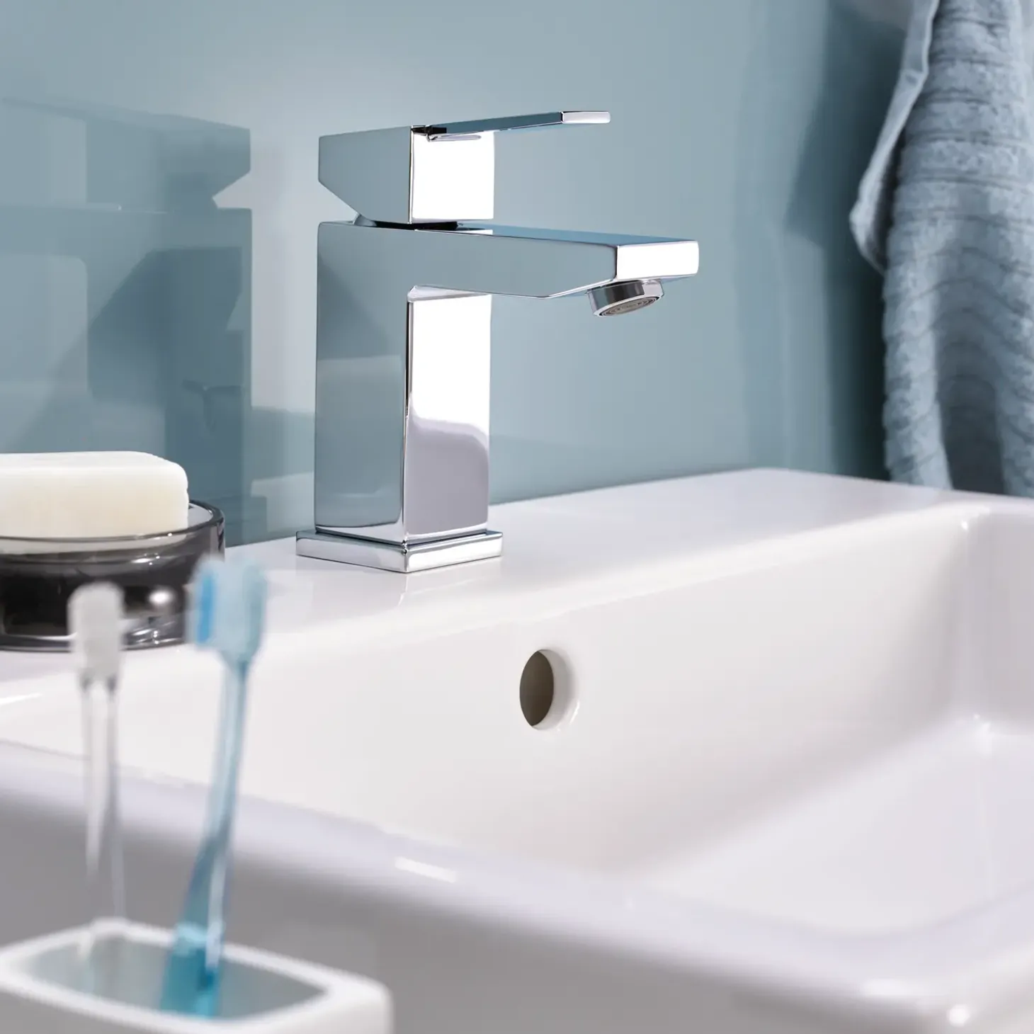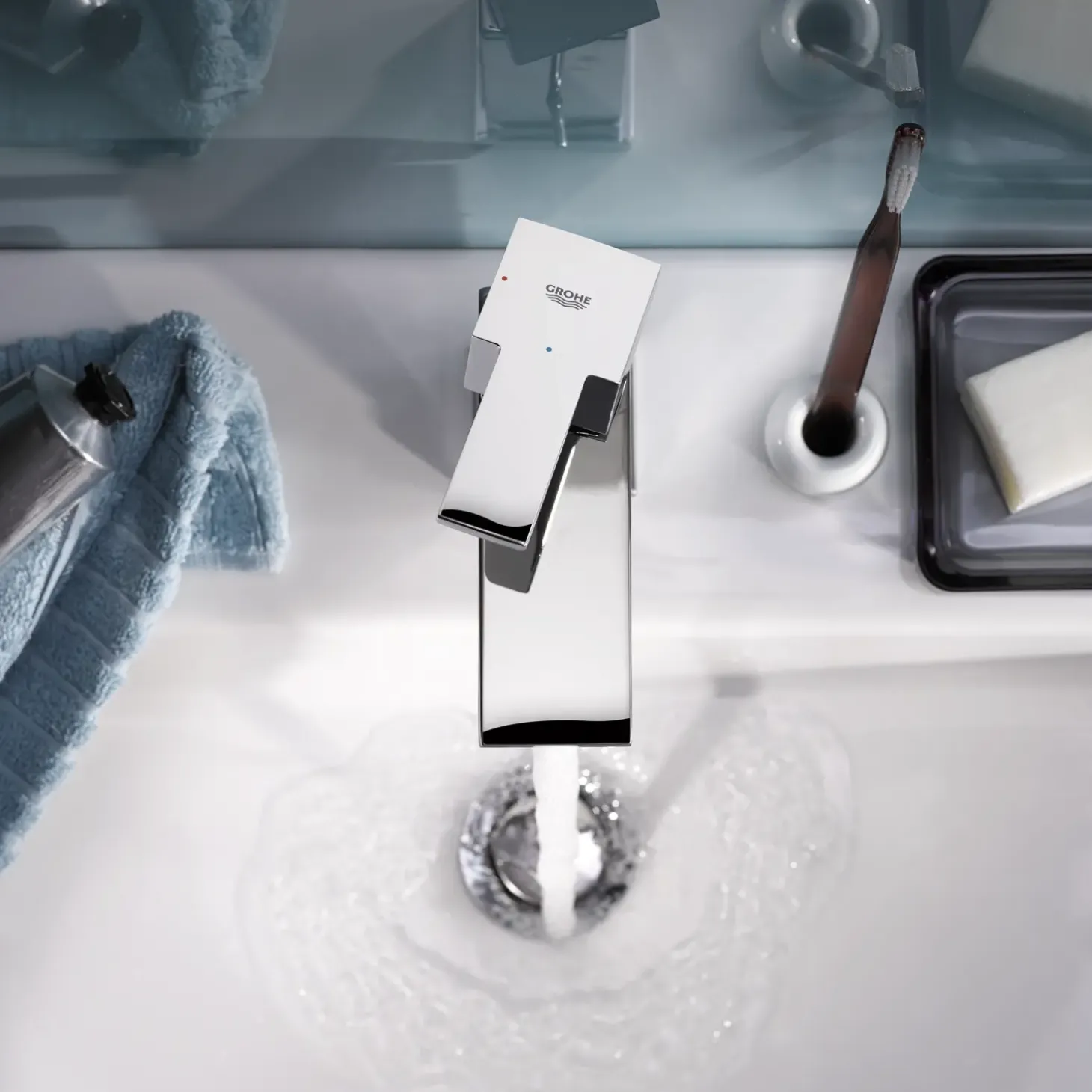 Grohe Sail Cube håndvaskarmatur, krom. Inkl løftestang med bundventil og fleksible tilslutningsslanger.