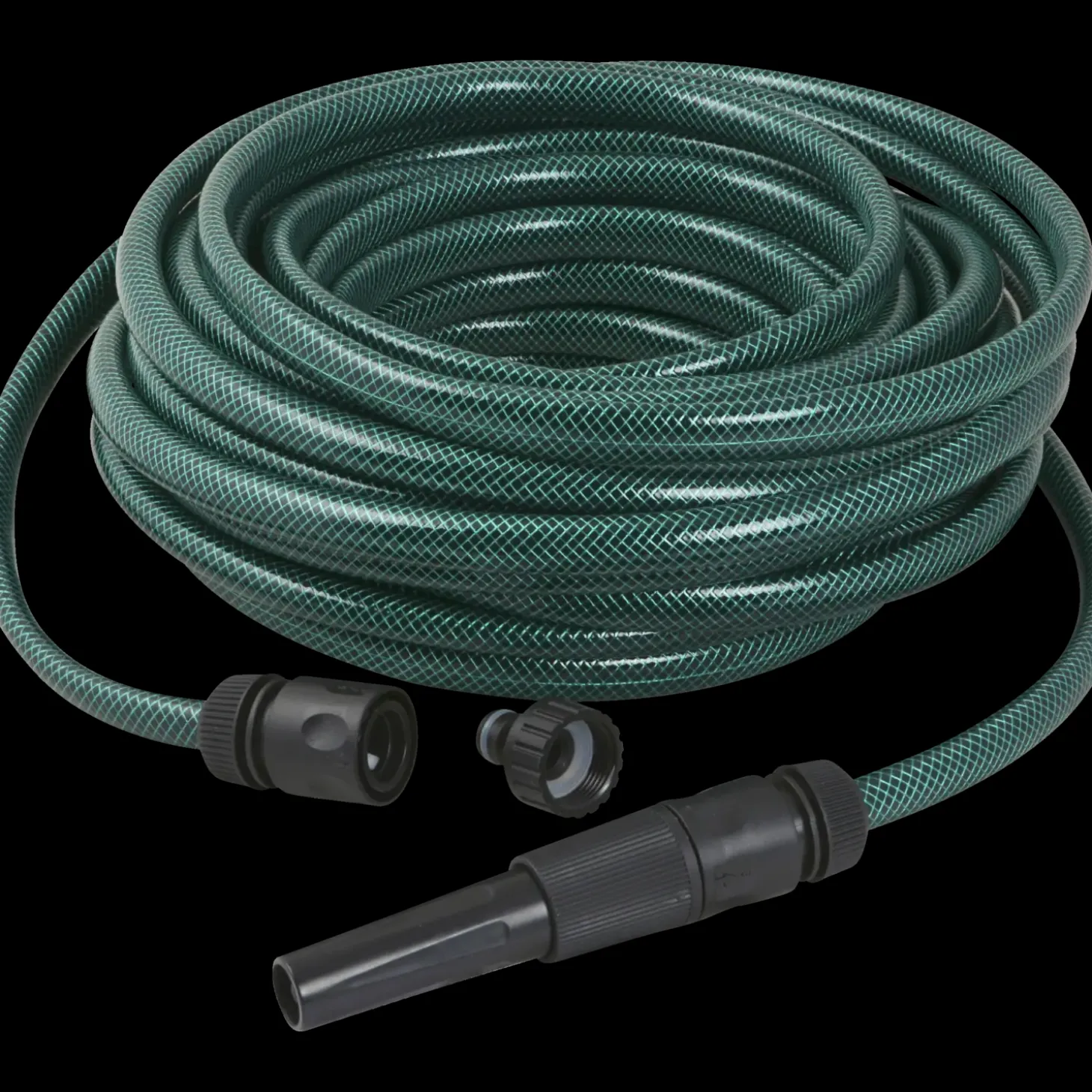 PVC haveslange 1/2″ inkl. 3 koblingsdele og strålespids som kan tilsluttes andre koblingssystemer.