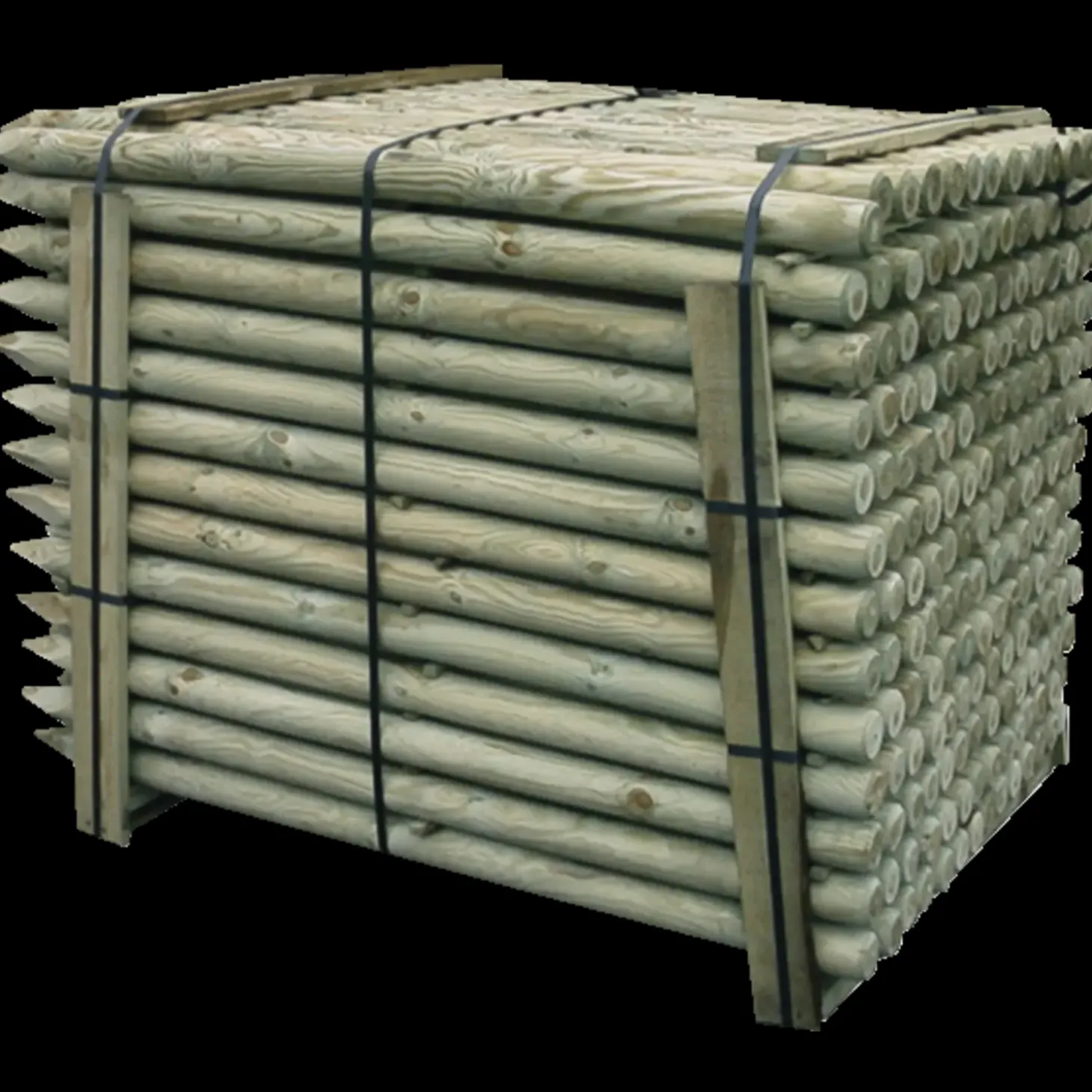 Trykimprægneret hegns-/opbindingspæl med spidset i den ene ende.