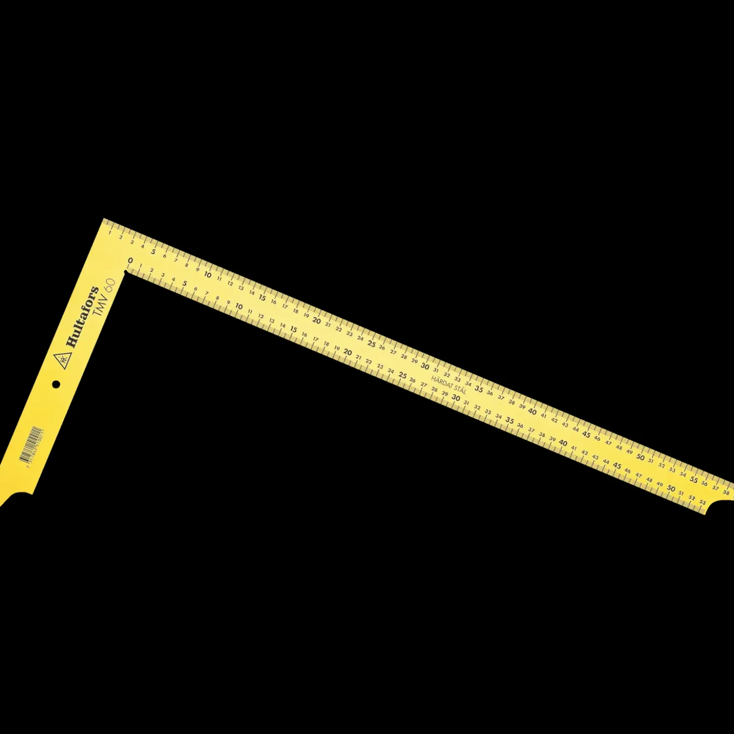 TMV Tømrervinkel med anslag i epoxylakeret stål med millimetergradering i over- og underkant på klingen.