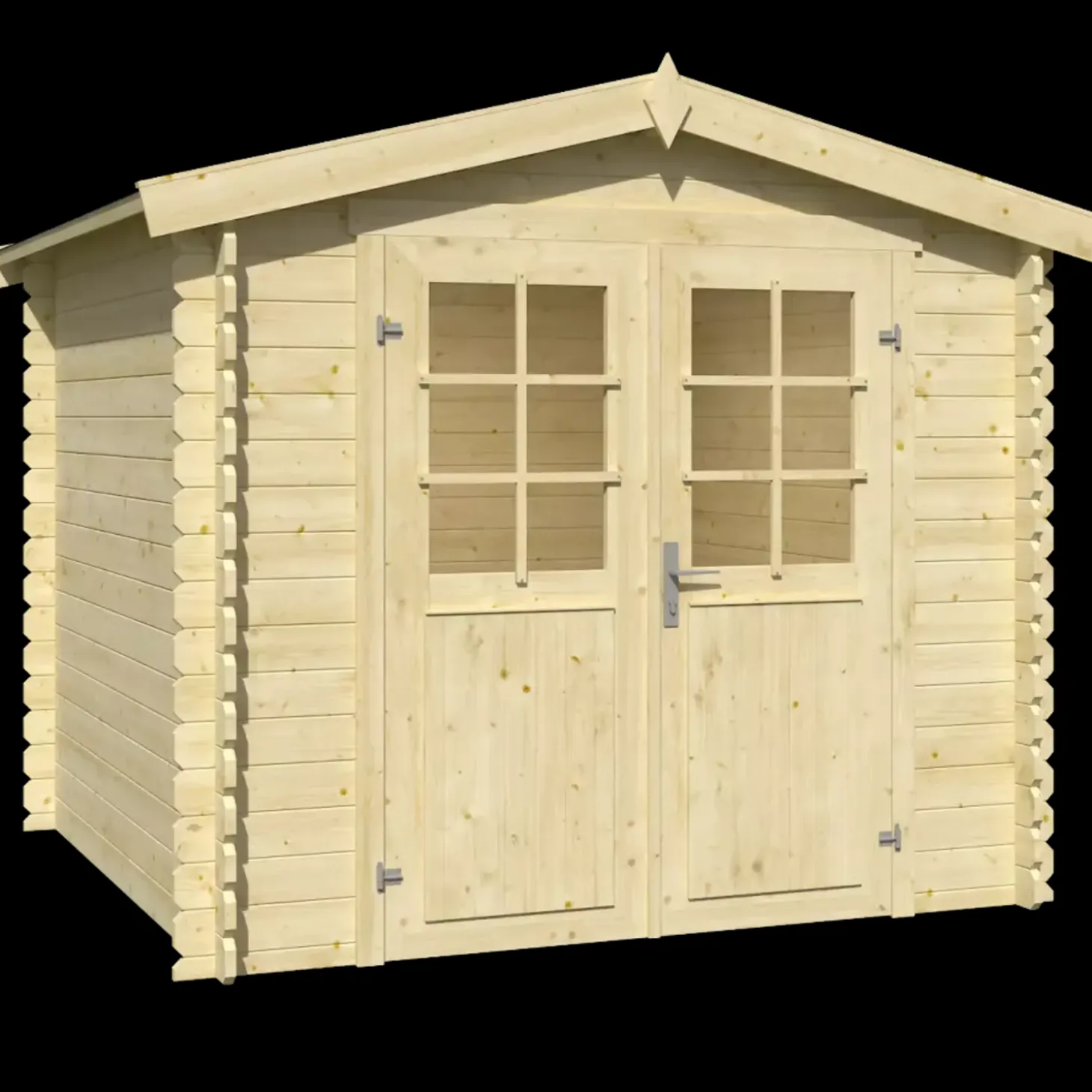 - Fremstillet af fyrretræ, som giver skuret et varmt og autentisk udtryk Vinduer i døren giver et fint lysindfald